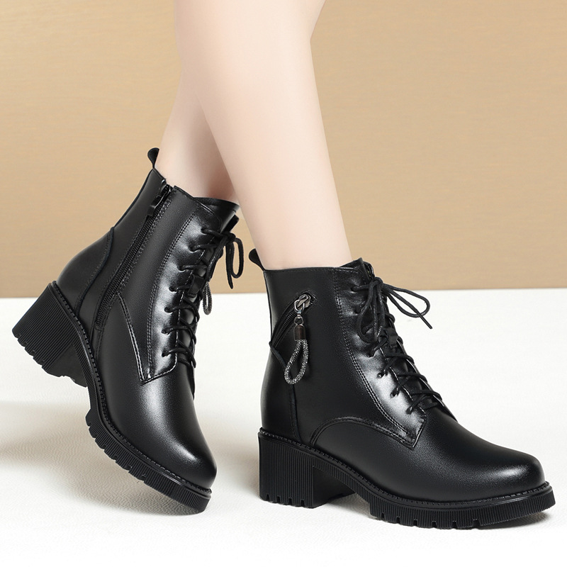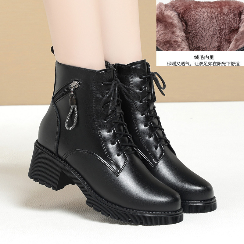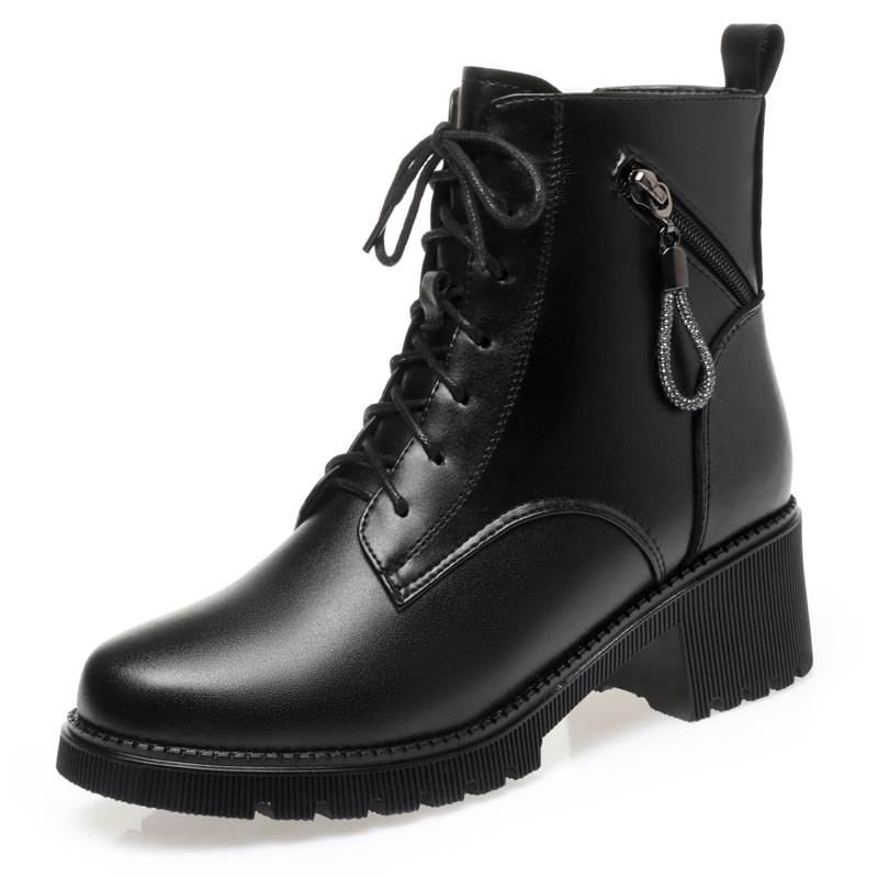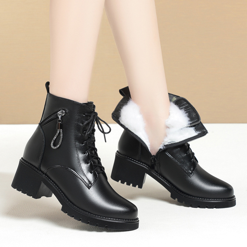 Главная страница > Женские сапоги из мягкой кожи, Ботинки Martin на флисовой подкладке, однослойные ботинки на среднем каблуке, новые зимние туфли с шерстяной хлопковой подкладкой, женские ботинки в британском стиле