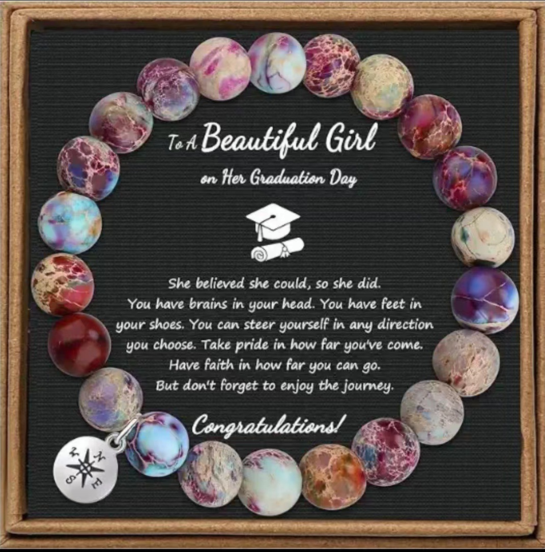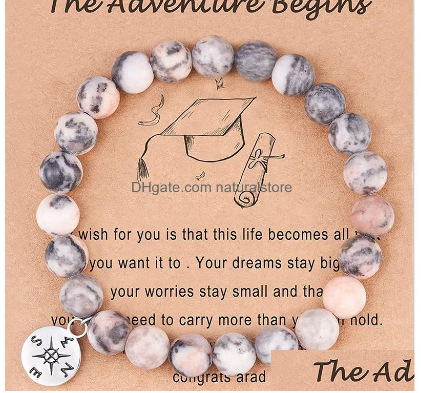 Браслет выпускного сезона розовая Зебра красный зернистый камень розовый кристалл Африканский бирюзовый браслет Розовая Зебра Выпускной сезон браслет с компасом