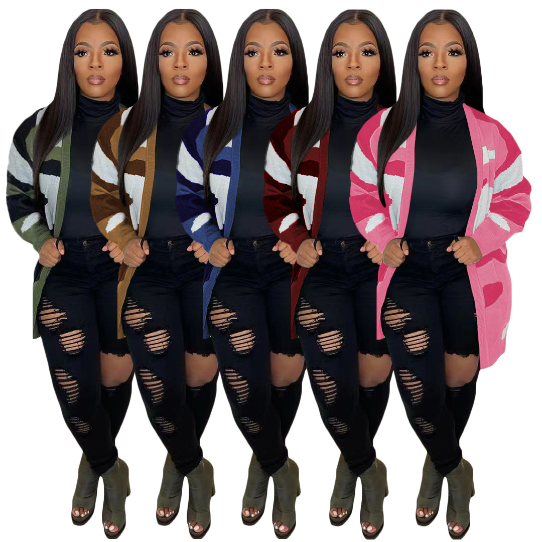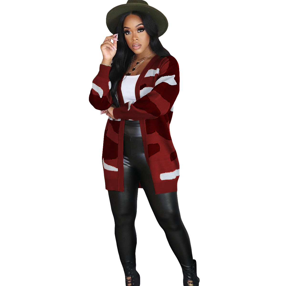 Главная страница > TS1187 Трансграничная поставка Новая Европейская и американская Женская Повседневная трикотажная куртка с камуфляжным принтом