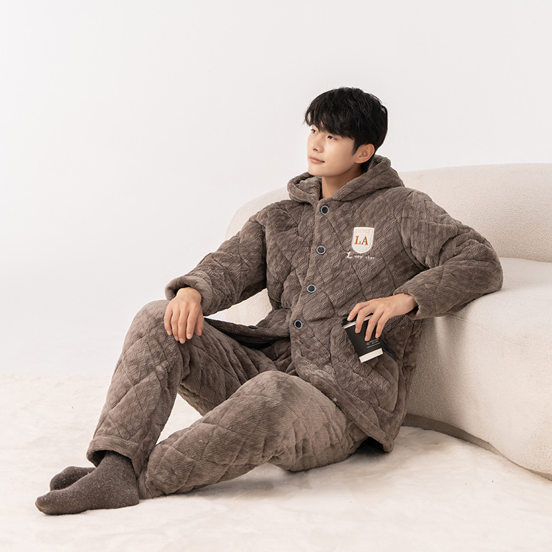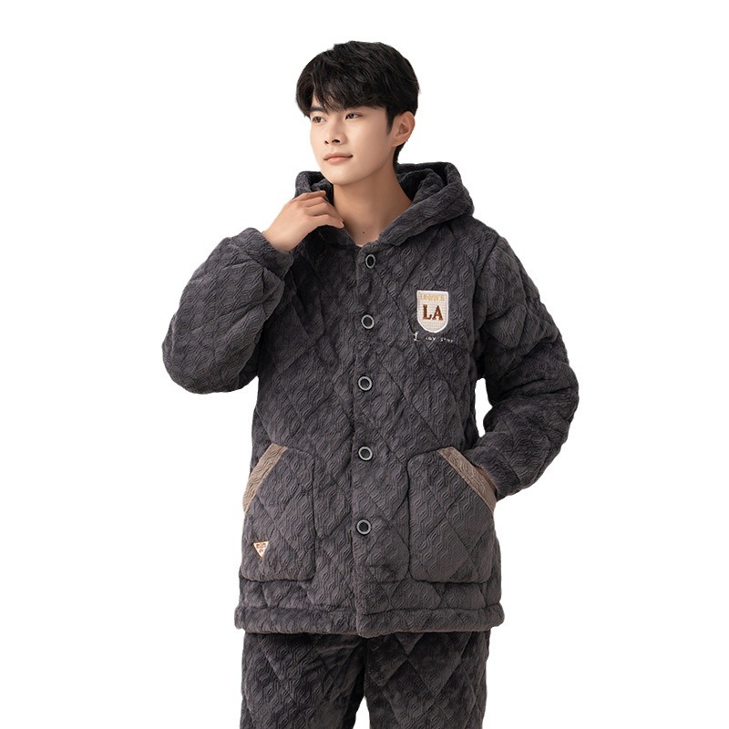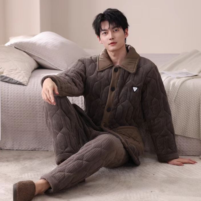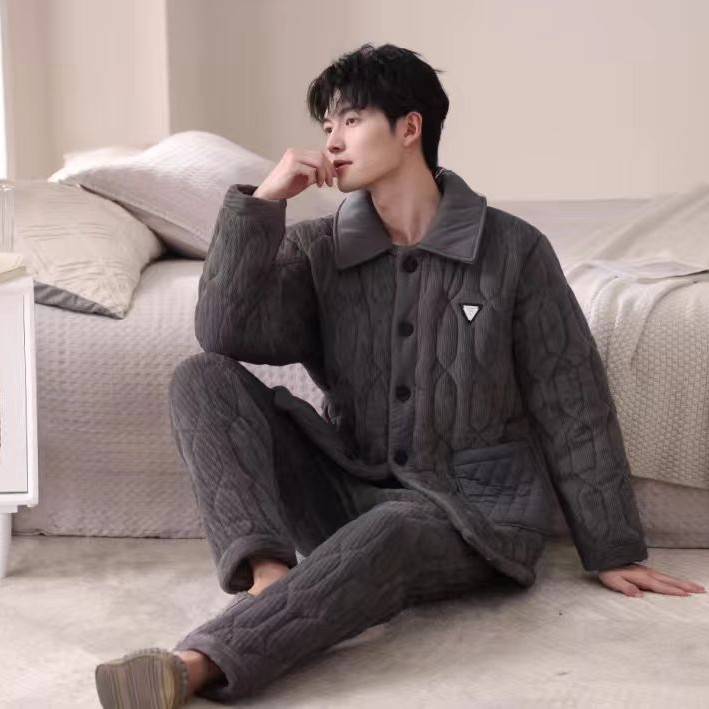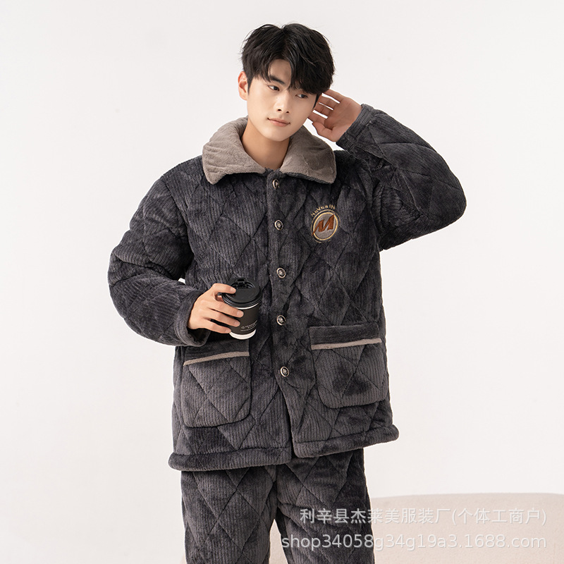 Главная страница > Мужская осенняя зимняя пижама с плюшевым толстым мужским трехслойным ватным фланелевым зимним подростком коралловым бархатом