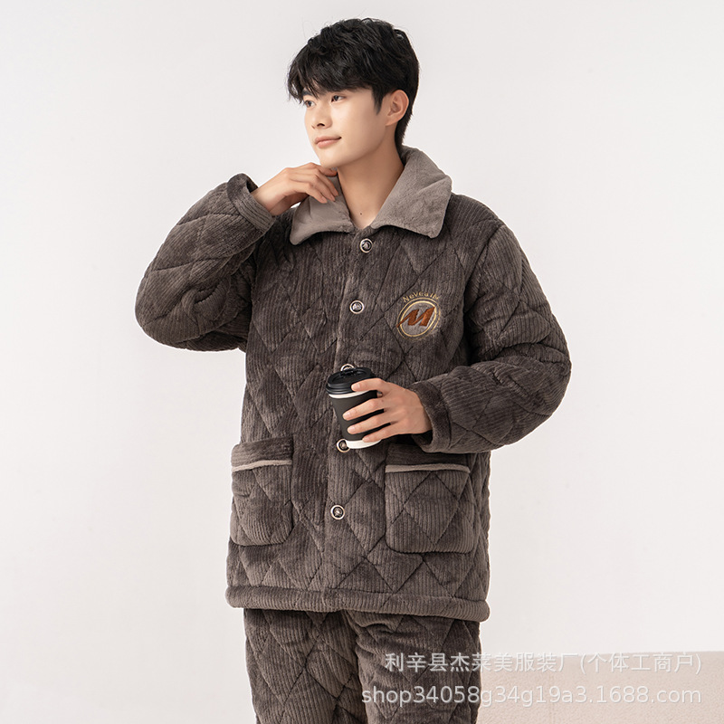 Мужская осенняя зимняя пижама с плюшевым толстым мужским трехслойным ватным фланелевым зимним подростком коралловым бархатом
