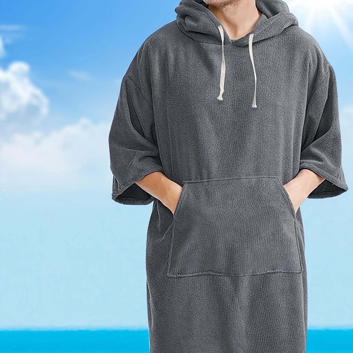 Главная страница > Утолщенная накидка с капюшоном из микрофибры, банное полотенце, быстросохнущая накидка для плавания, пляжа, серфинга, сменный халат для пары