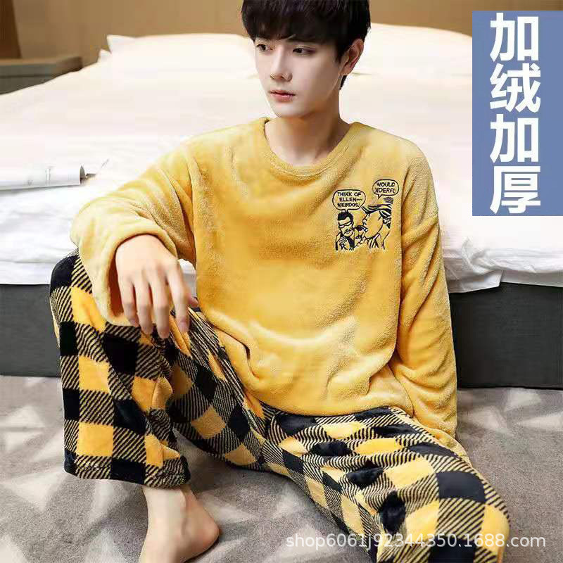 Главная страница > Пижама Мужская зимняя на флисовой подкладке утолщенная фланель теплый осенне-зимний коралловый флисовый костюм домашняя одежда больших размеров пригодная для носки