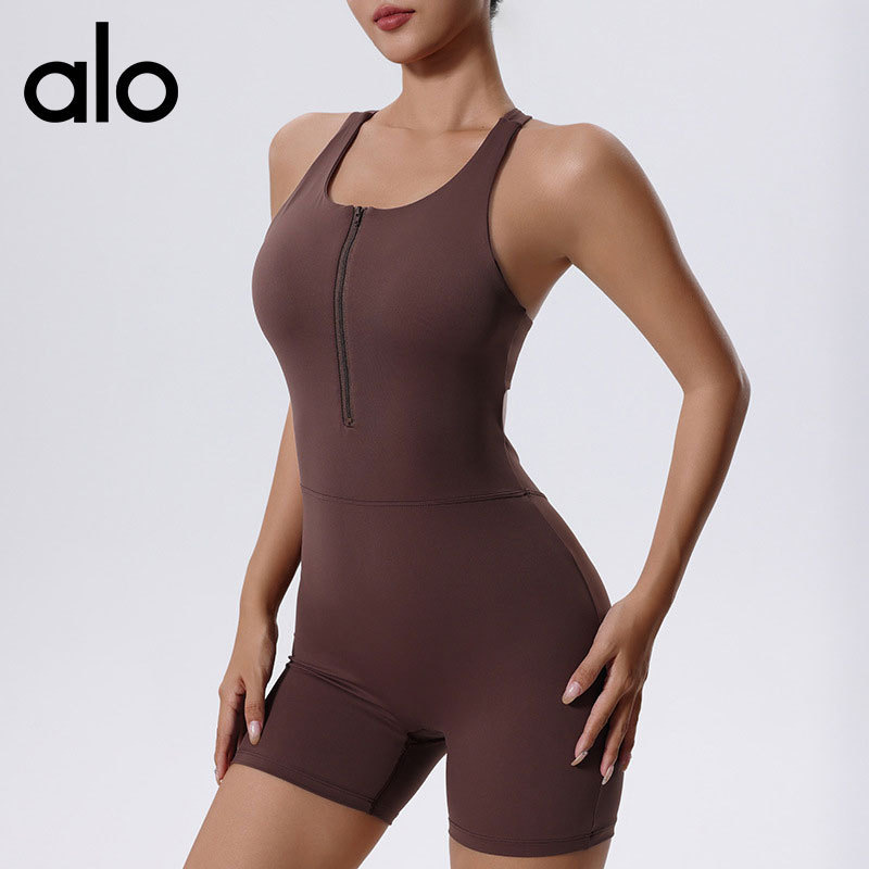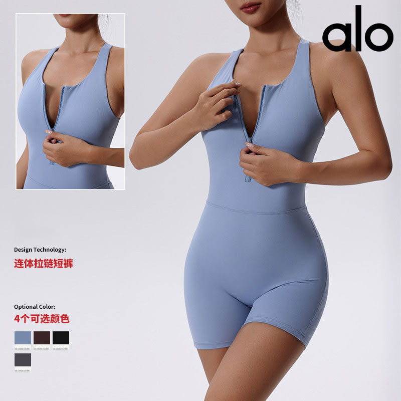 alo跨境工字美背连体服女2025拉链运动短裤提臀空中瑜伽服批发