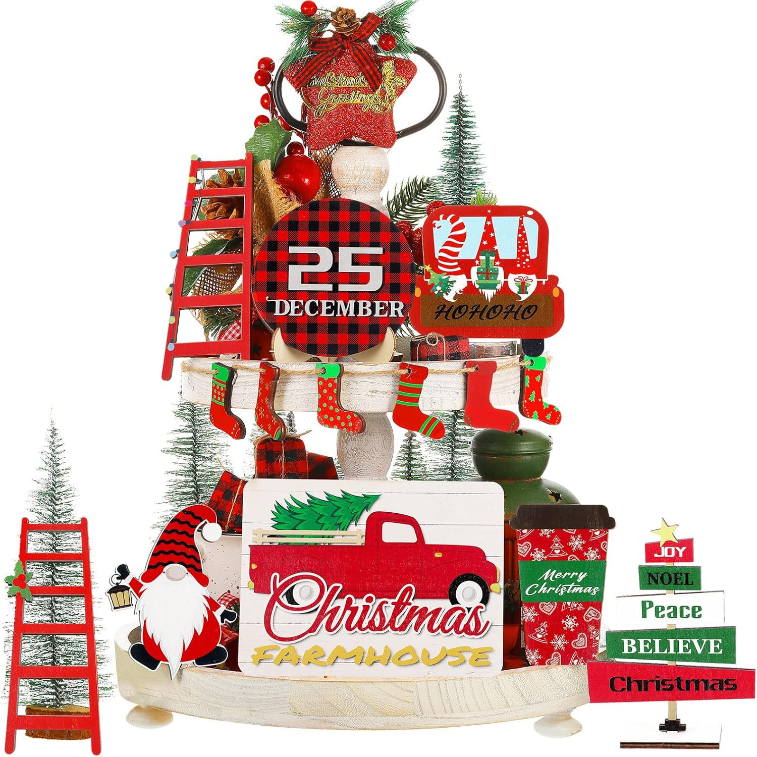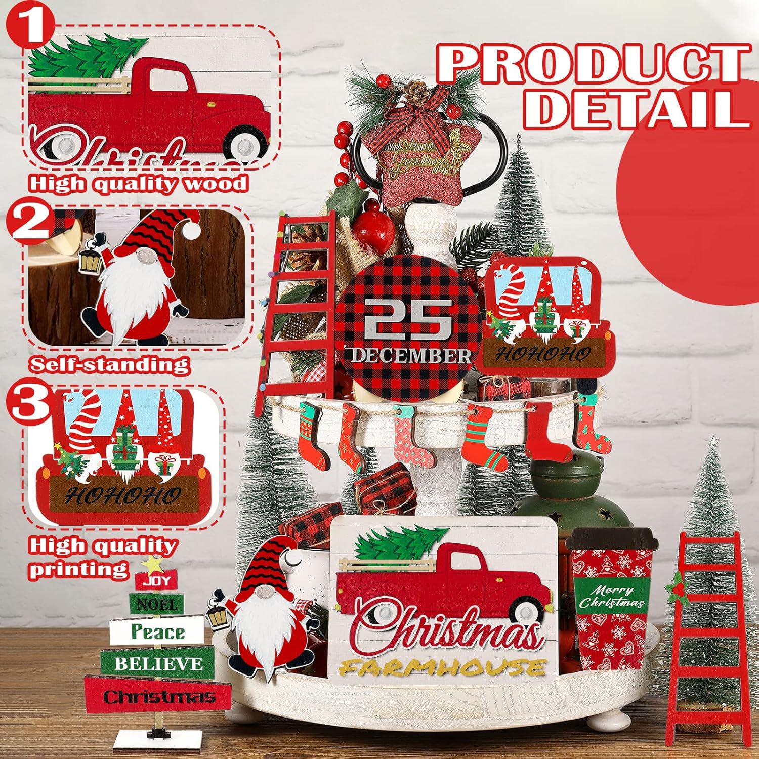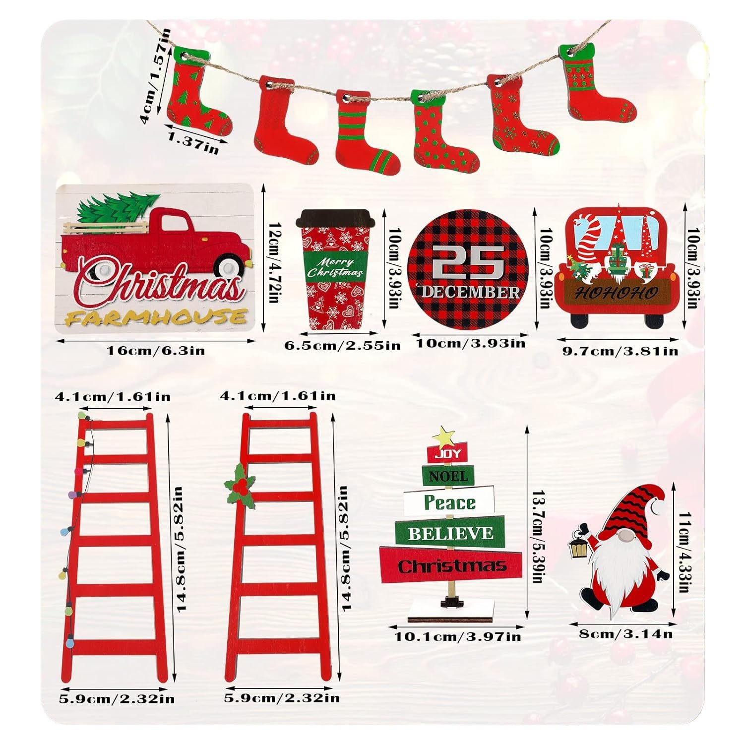 14 шт., рождественский многоуровневый набор декора для подносов, деревенский дом, клетчатая снежинка, гном, деревянный знак