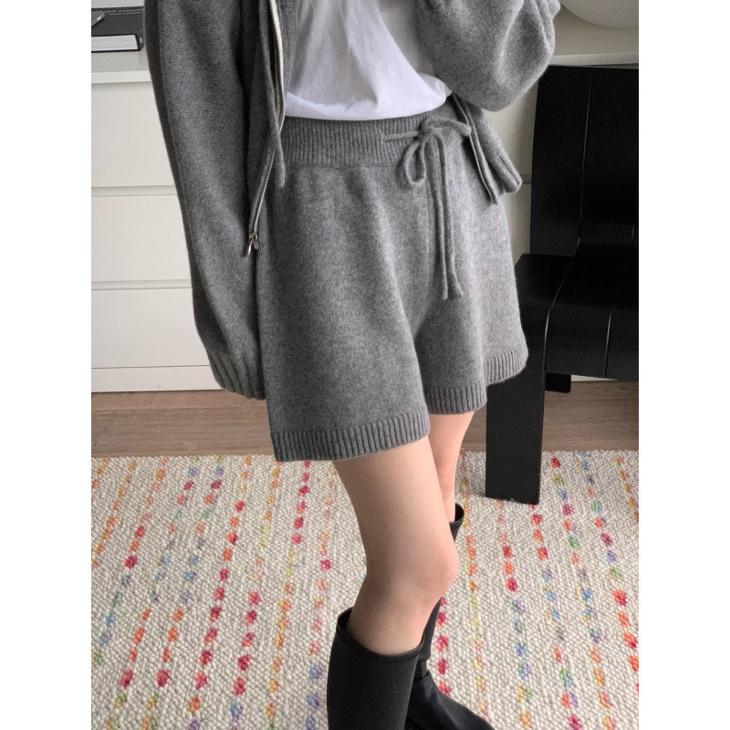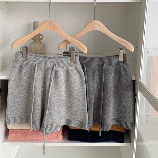 Главная страница > Шорты женские трикотажные с высокой талией, свободные, широкие штанины, новинка осень-зима 2025, с эластичным поясом, силуэт А-силуэт, повседневные прямые брюки
