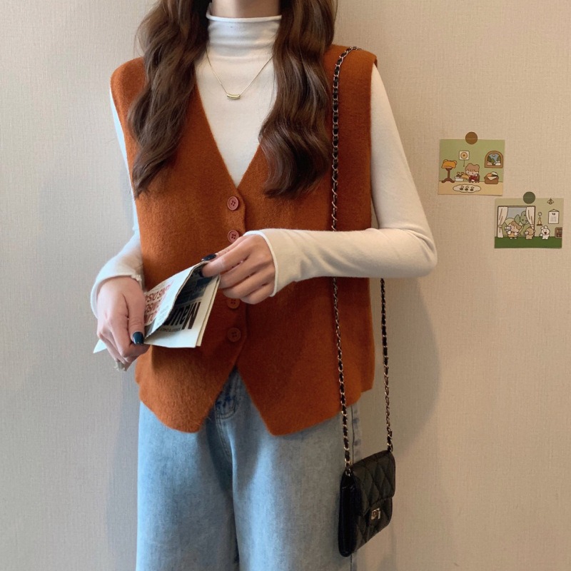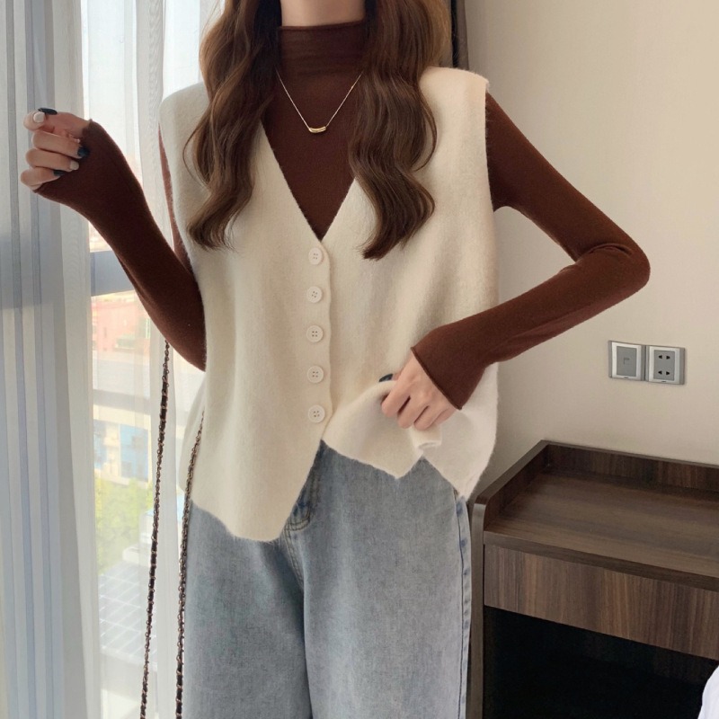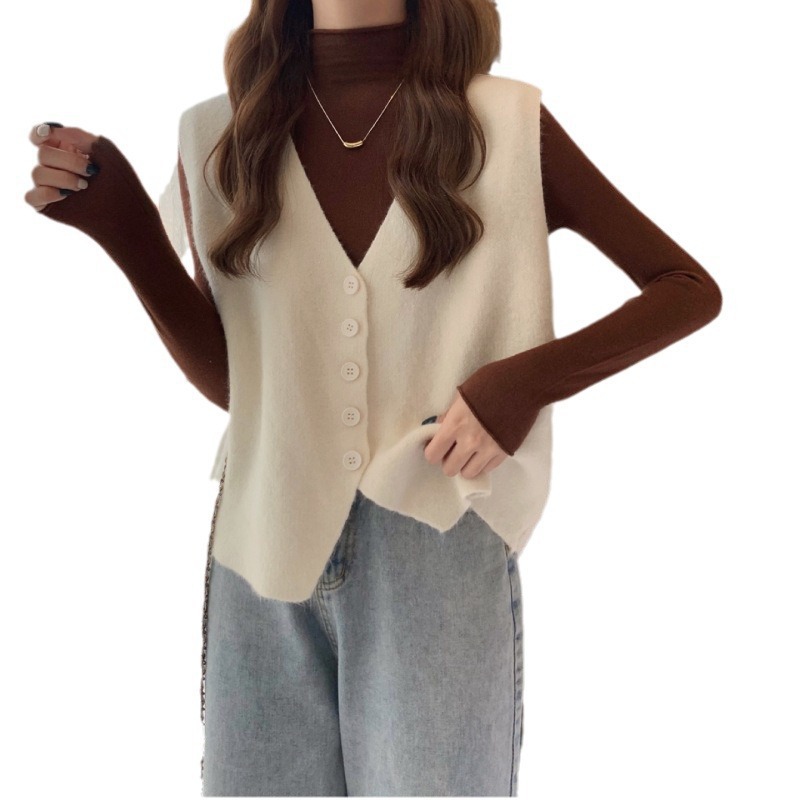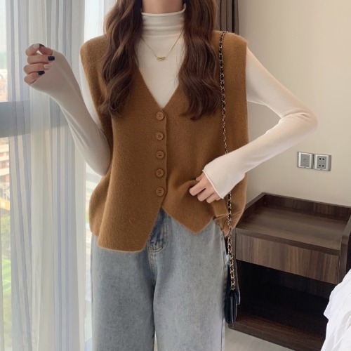Главная страница > Корейский трикотажный жилет с v-образным вырезом свободный короткий неправильный однобортный плечо новый джемпер без рукавов
