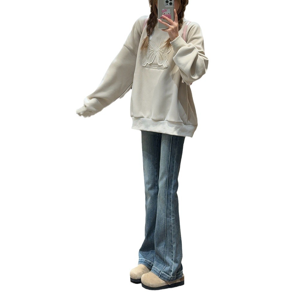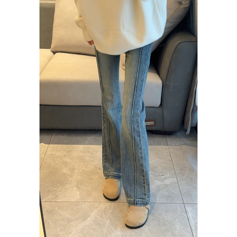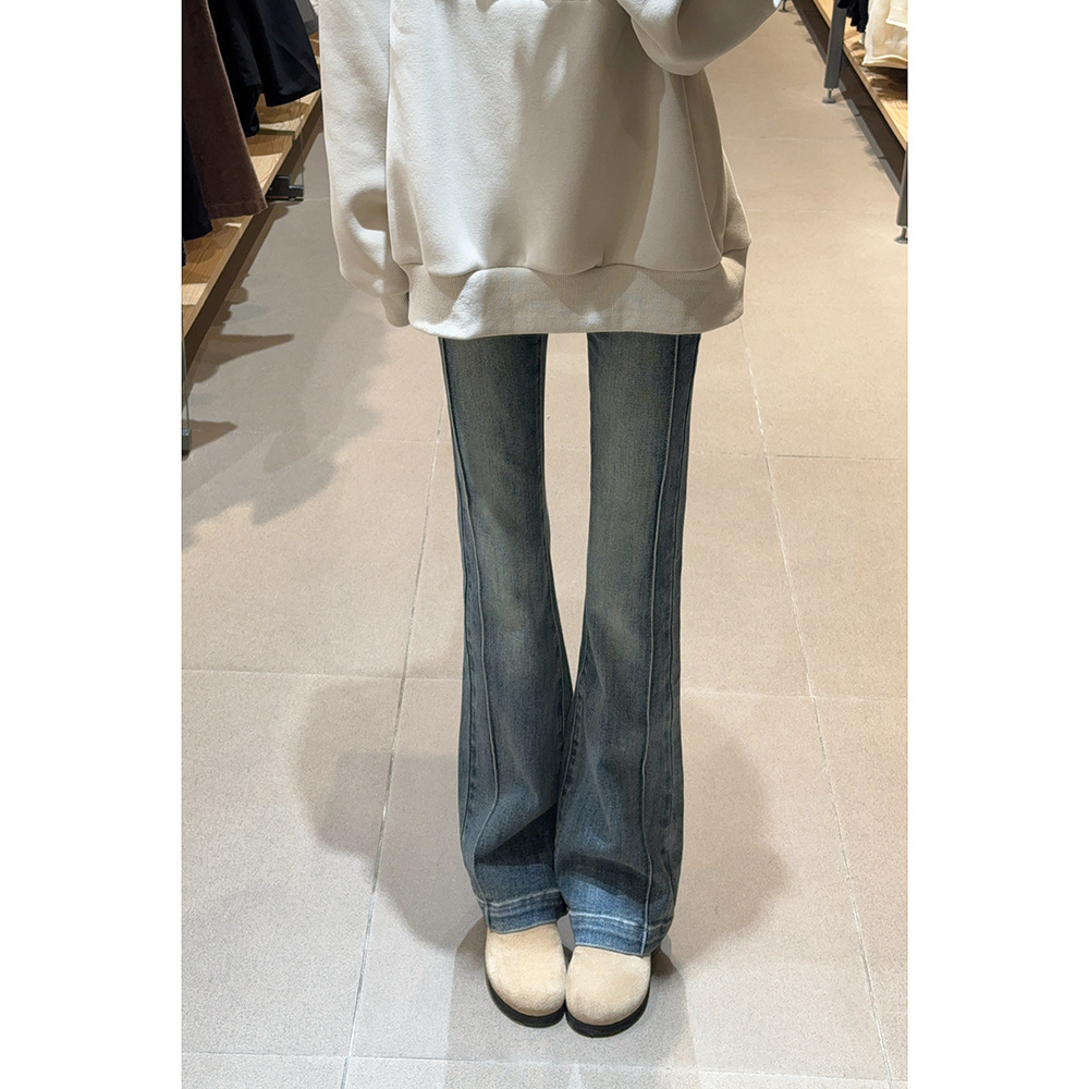 Главная страница > Винтажные джинсы-клеш с высокой талией для женщин, осенне-зимние облегающие эластичные прямые брюки-клеш в пол