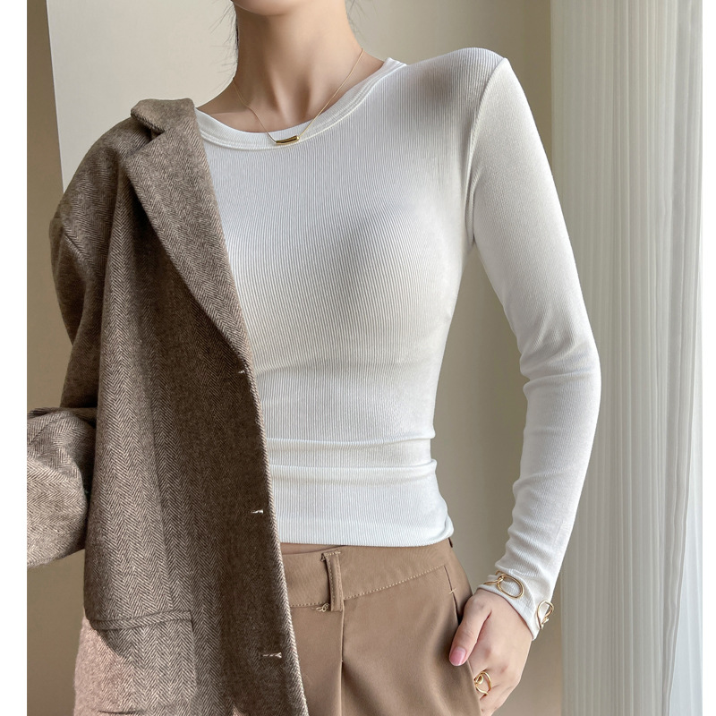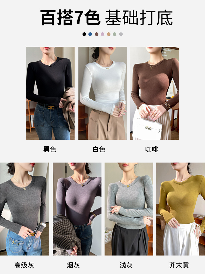 Главная страница > Популярная Модальная приталенная Базовая рубашка с круглым вырезом и резьбой, Женская внутренняя одежда, осенне-зимняя тонкая футболка с длинными рукавами, верхняя одежда, Топ