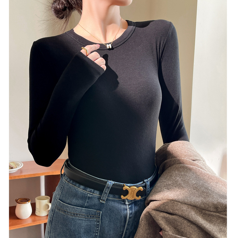 Популярная Модальная приталенная Базовая рубашка с круглым вырезом и резьбой, Женская внутренняя одежда, осенне-зимняя тонкая футболка с длинными рукавами, верхняя одежда, Топ