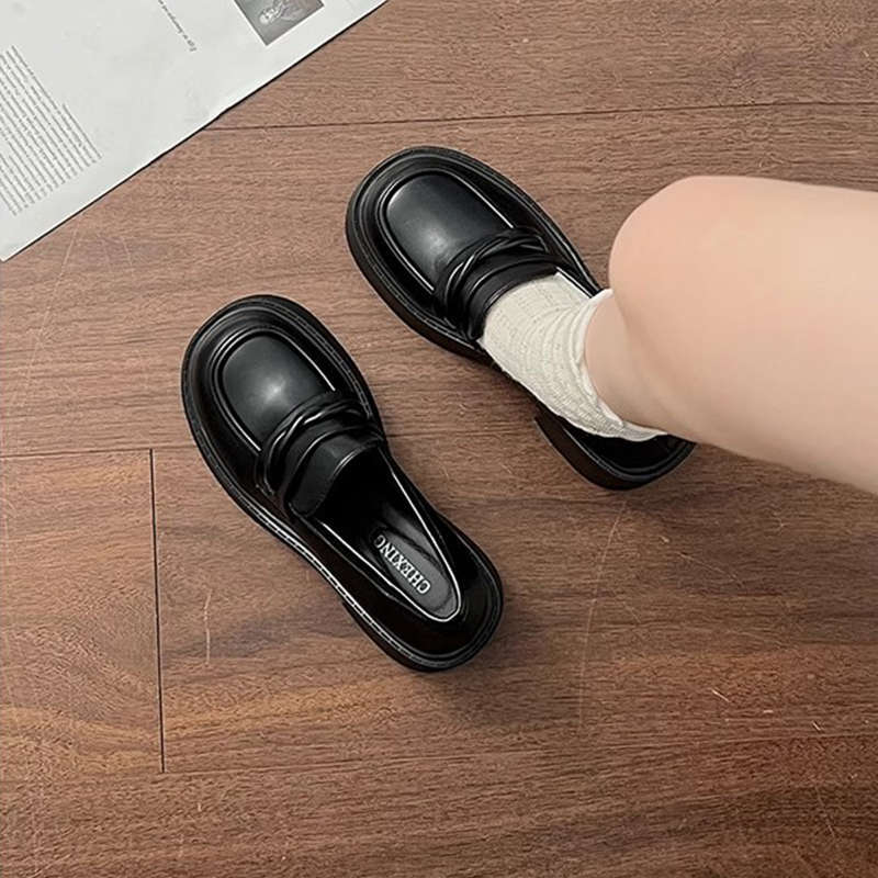 Главная страница > Маленькие кожаные туфли в британском стиле для женщин, туфли на плоской подошве на толстой подошве, увеличивающие рост, универсальные туфли на высоком каблуке на толстом каблуке, весенне-осенние черные лоферы.