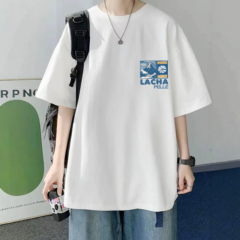 Главная страница > Мужская футболка из плотного чистого хлопка с коротким рукавом, летняя коллекция 2025 года, новый модный бренд, американский стиль, простой дизайн.