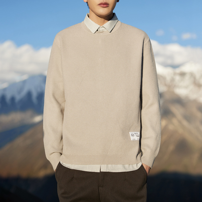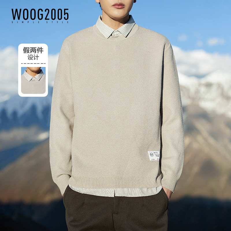 Главная страница > Мужской свитер с воротником-рубашкой, имитация двухслойного кроя, новинка весна-осень 2025, модный трикотаж для мужчин