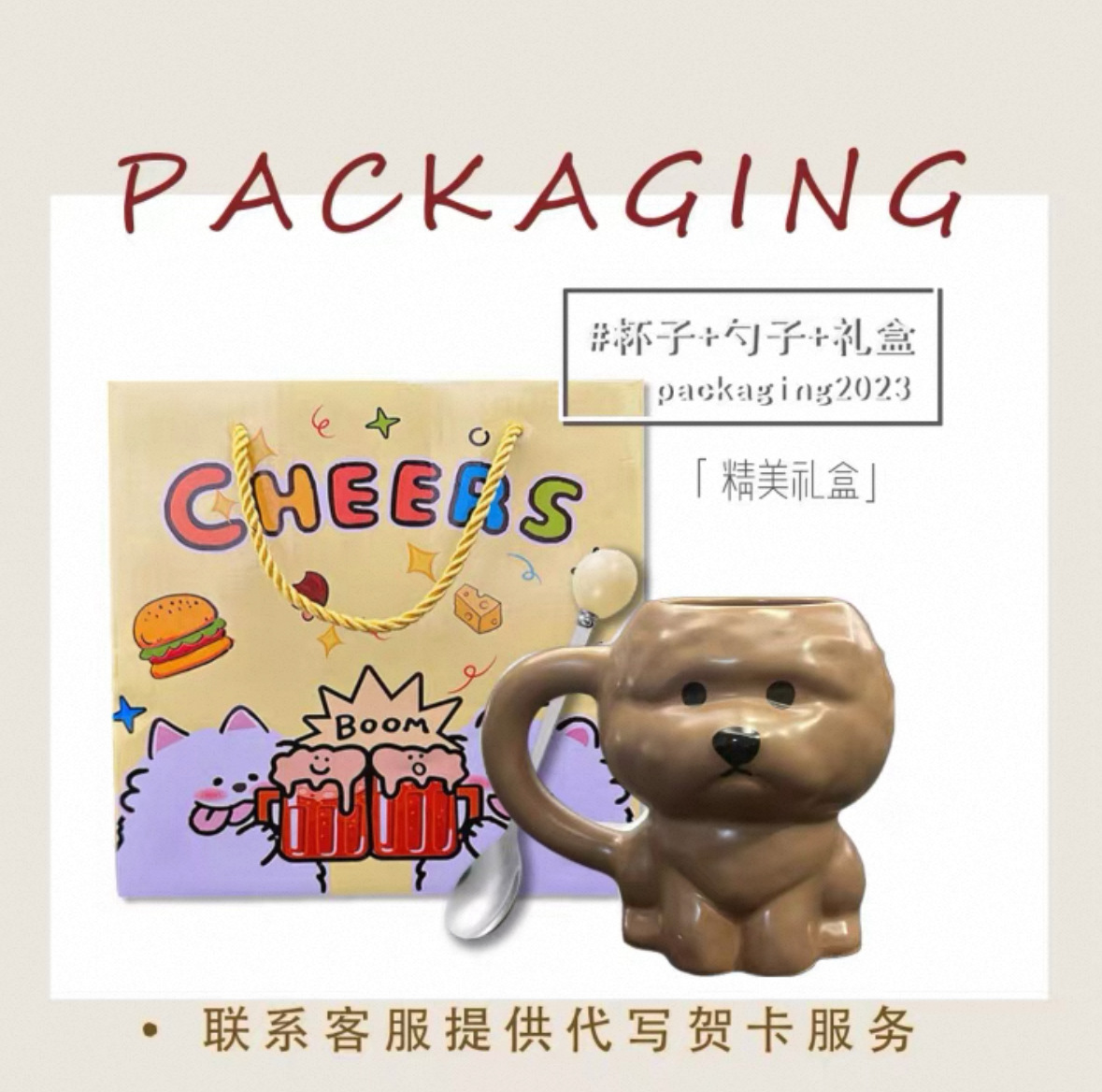 Чашка для бишона, ложка для молока, подарочная коробка [коричневая]