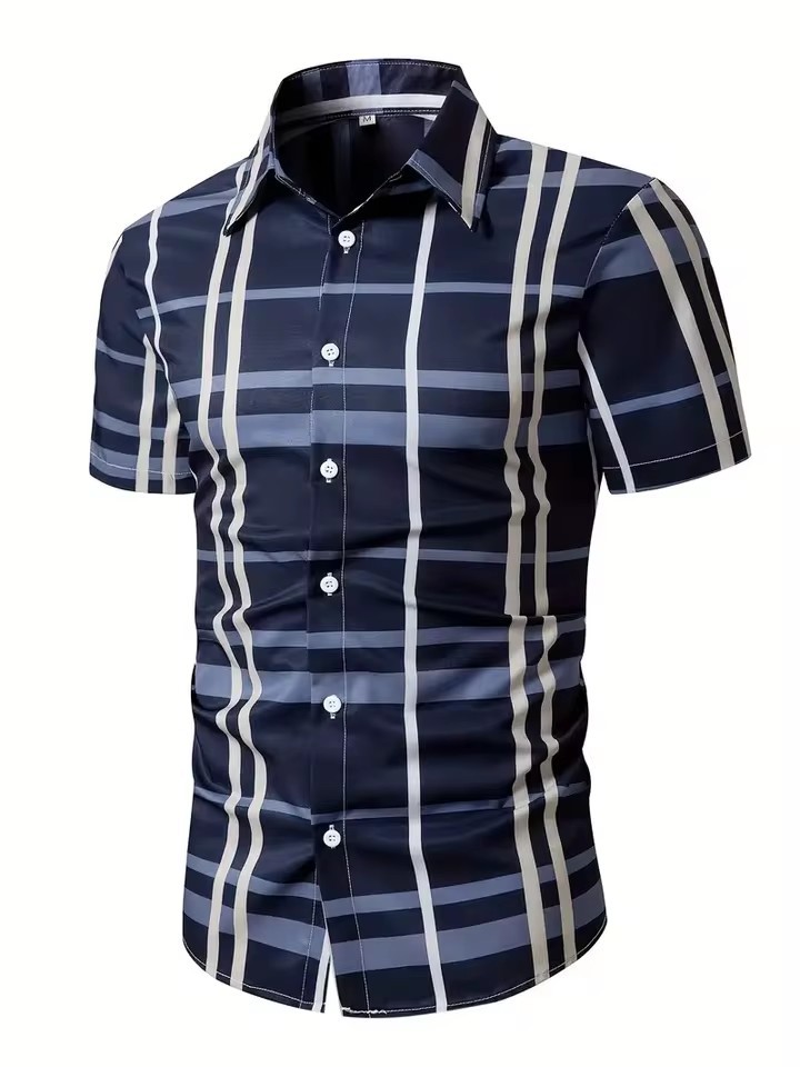 Главная страница > Мужская деловая летняя широкая сосна с длинным плечом и коротким рукавом однобортная рубашка классическая минималистская геометрическая линия 3D цифровой принт