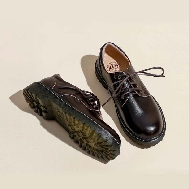 Главная страница > Мокасины на толстом каблуке на шнуровке в студенческом стиле, женские кожаные туфли на толстой подошве с круглым носком, однослойные туфли в британском стиле в стиле ретро с глубоким носком и низким каблуком