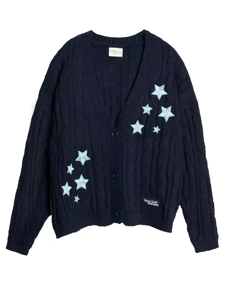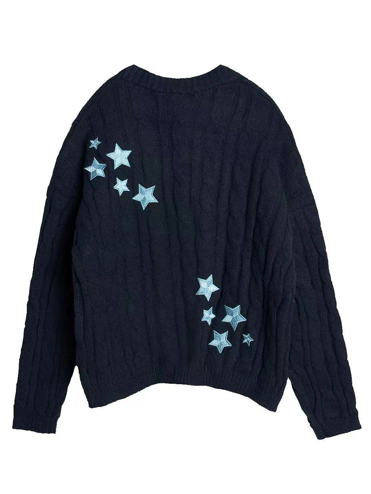 Главная страница > 2024 новый зимний вязаный свитер повседневный ретро звезды свитер с длинными рукавами блузка кардиган куртка