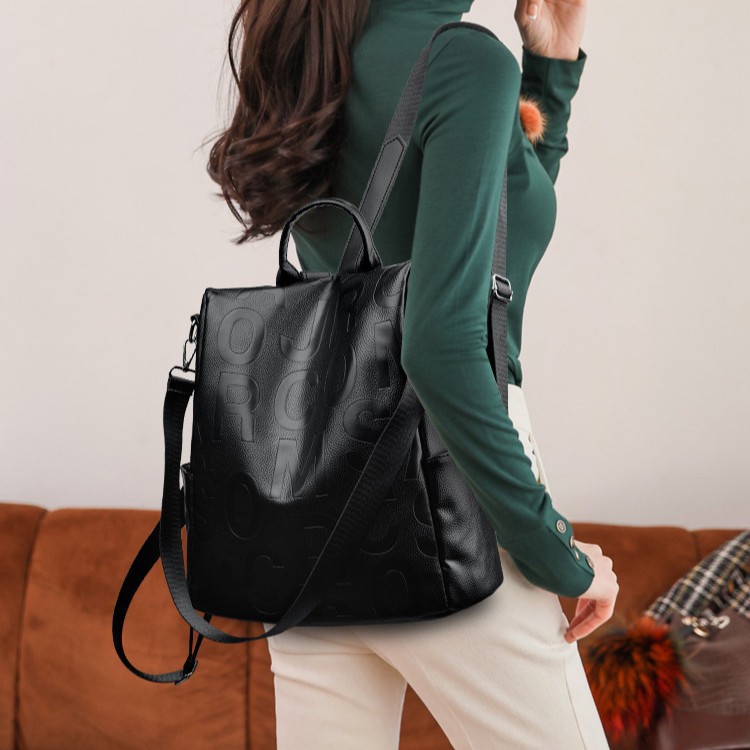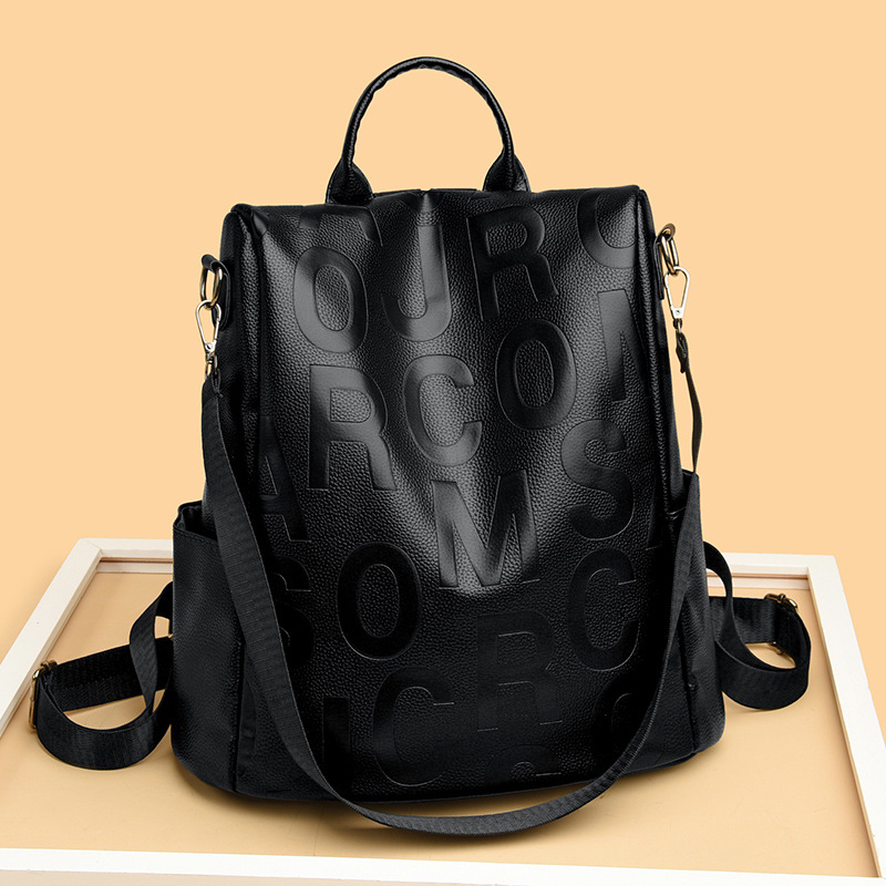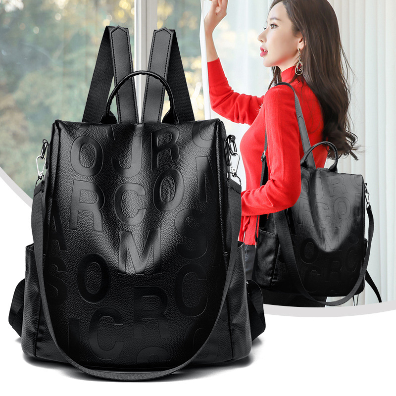 Тенденция сумка на плечо женский 2025 многофункциональный школьный портфель большая емкость сумка на плечо мягкая pu сплошной цвет женский рюкзак для путешествий