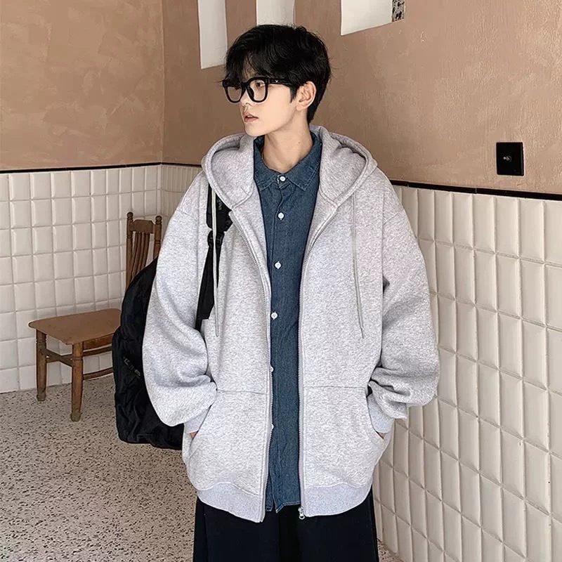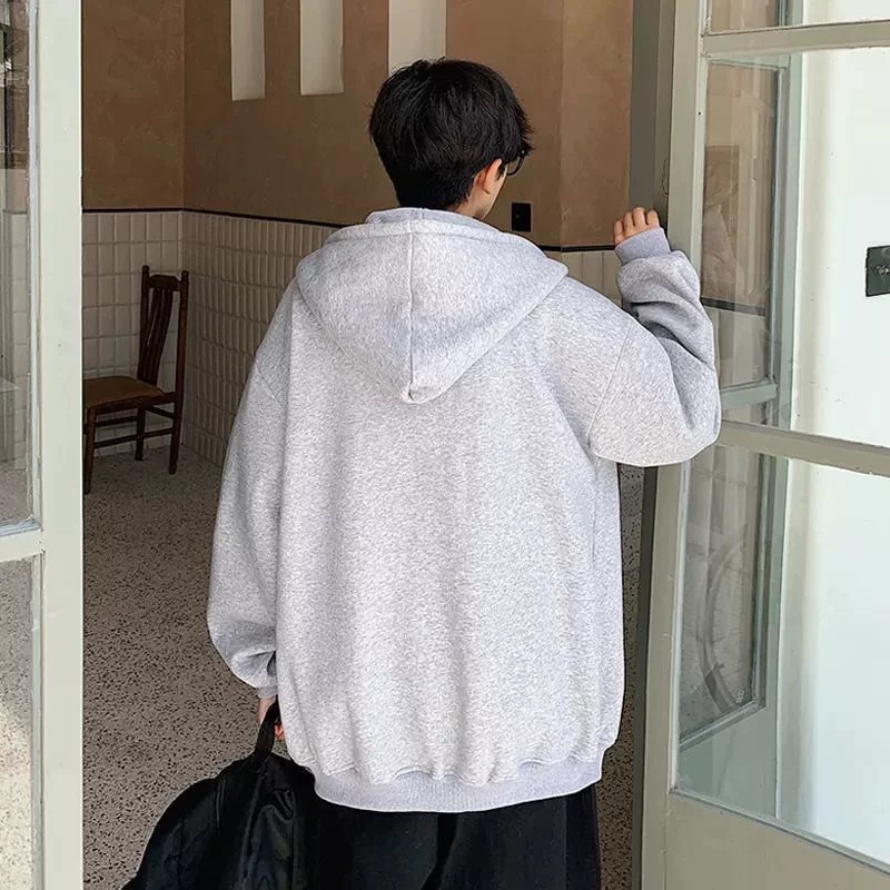 Главная страница > Зимний кардиган в гонконгском стиле, мужской модный свободный студенческий свитер на молнии с капюшоном и флисовой подкладкой, повседневный спортивный топ