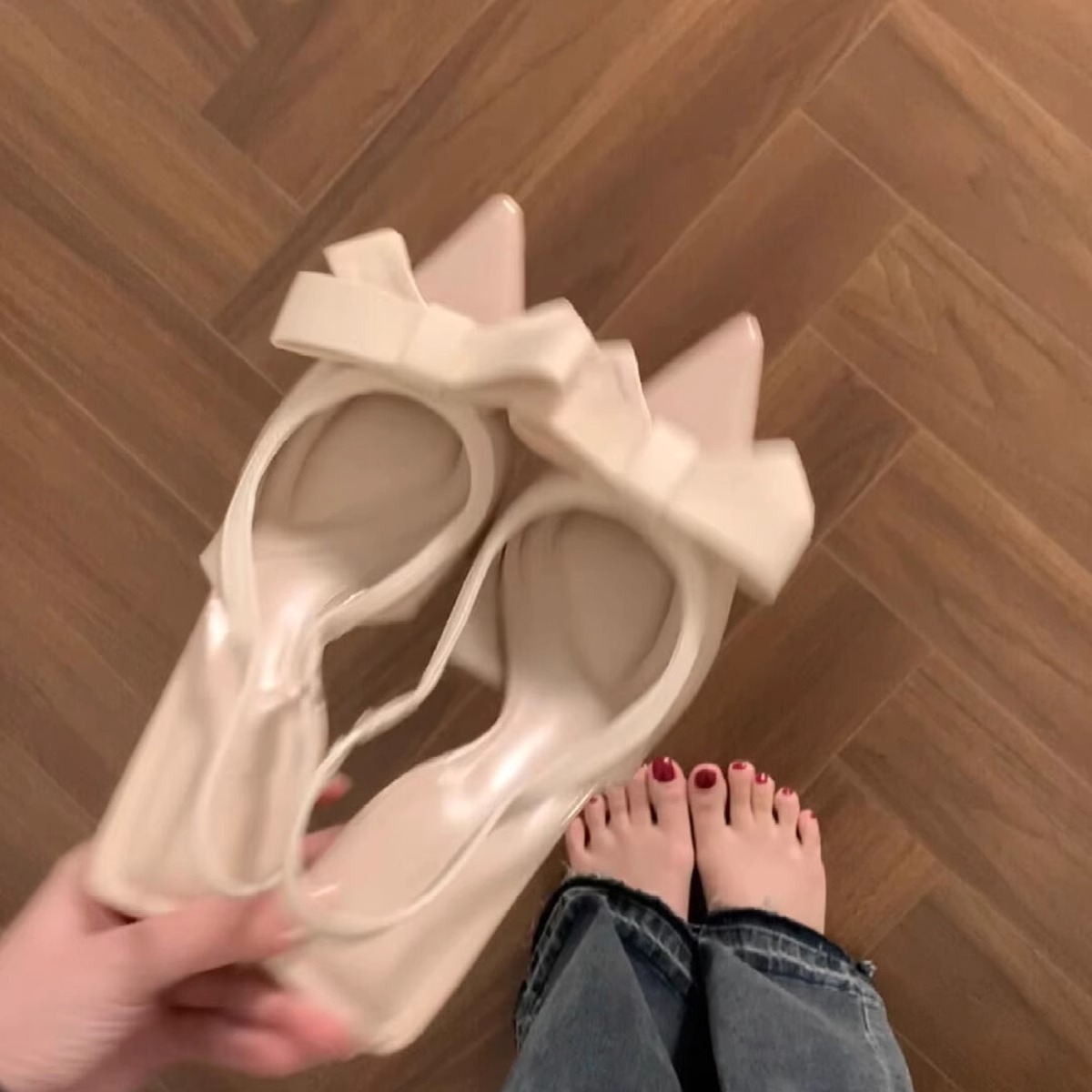 Главная страница > Версия из овчины ~ Французские нежные сандалии с неглубоким ртом женские новые банты с острым темпераментом одиночные туфли