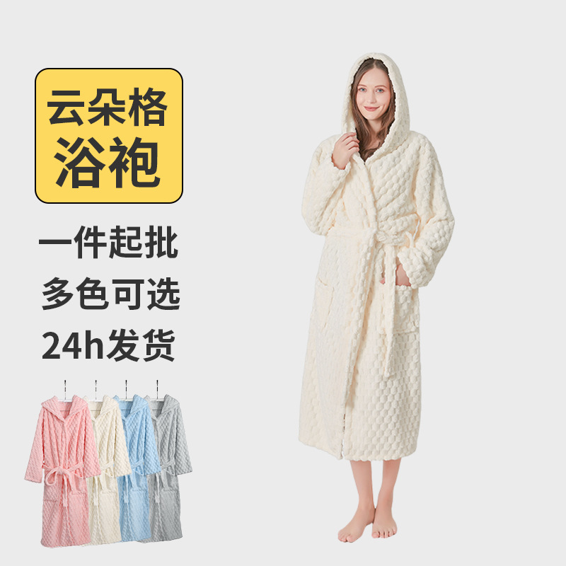 Главная страница > Халат с облачным узором, утолщенный, мягкий, с высокой впитываемостью, быстросохнущий, не оставляет ворса, унисекс, зимний халат, большой халат для сна.