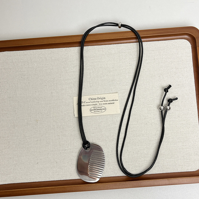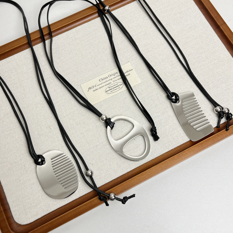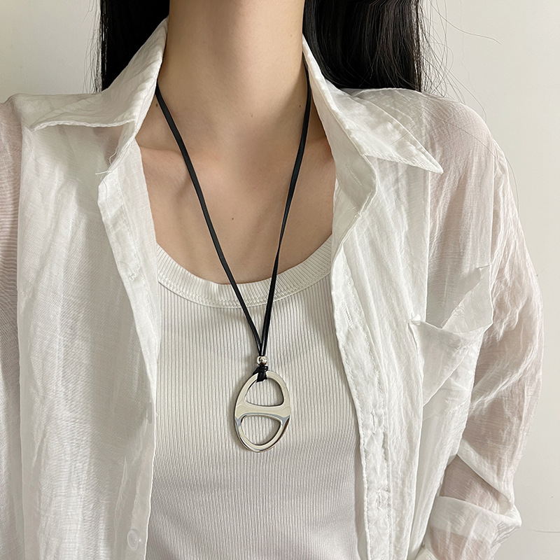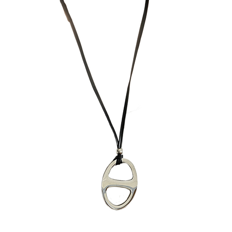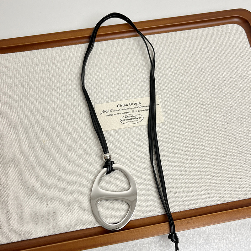 Главная страница > Титановая сталь, невыцветающее ожерелье с маленьким гребнем в виде свиного носа, женское нишевое высококачественное стильное кожаное ожерелье с длинной цепочкой для свитера