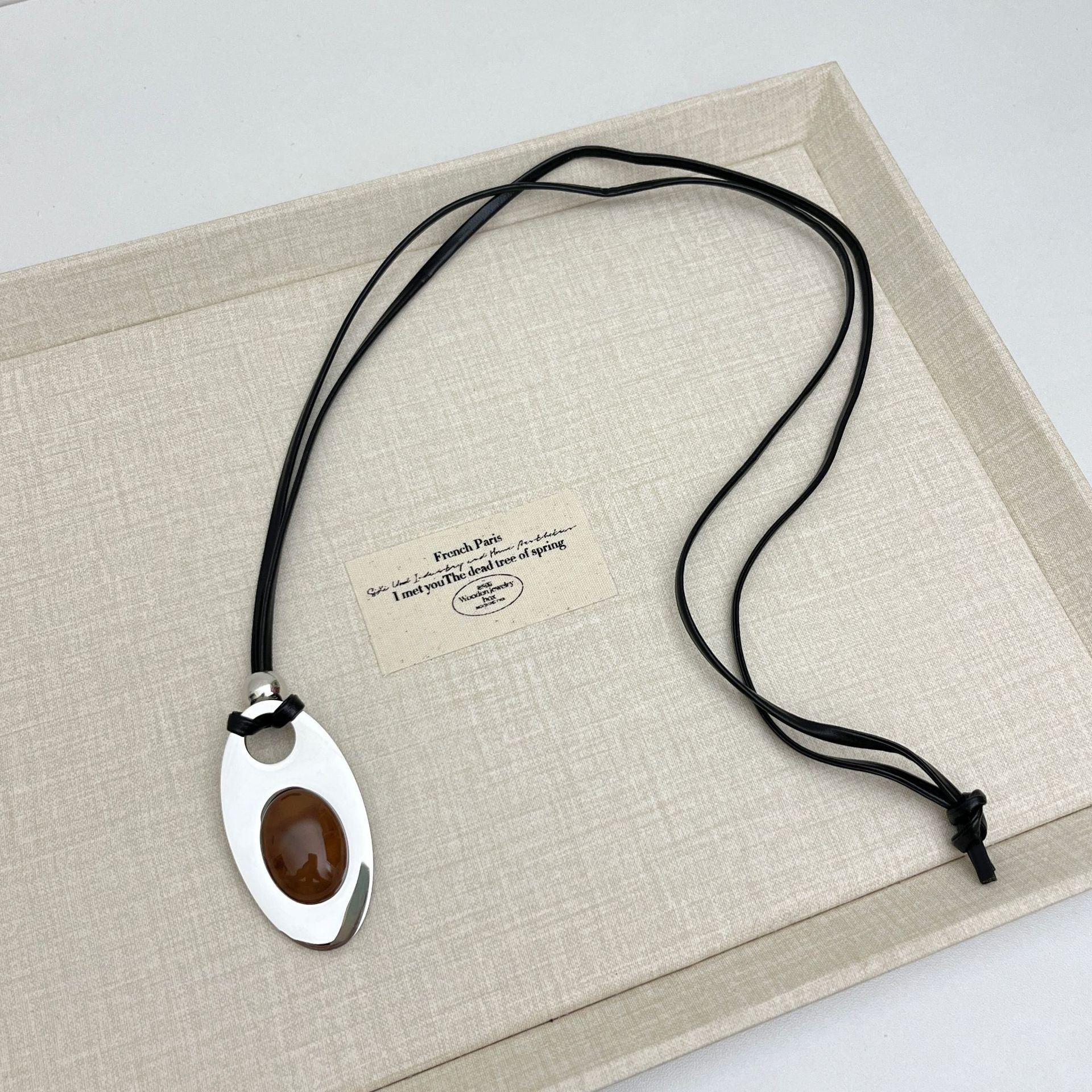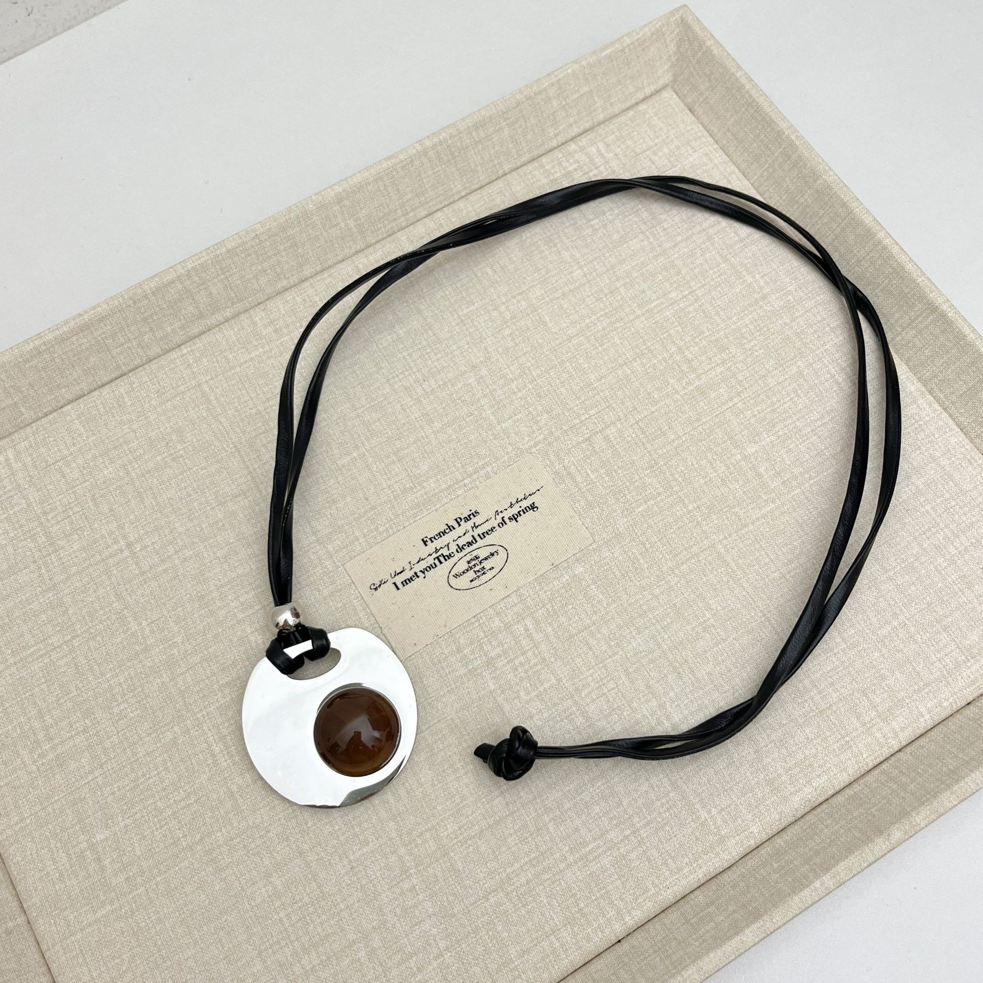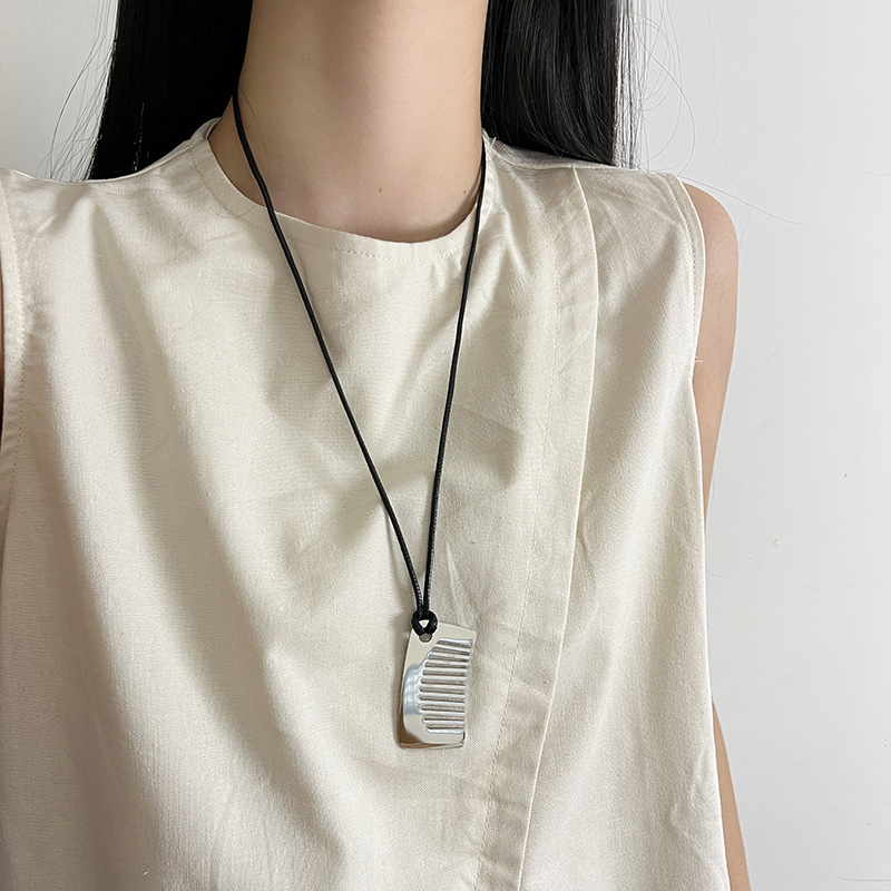 Главная страница > Титановая сталь, невыцветающее ожерелье с маленьким гребнем в виде свиного носа, женское нишевое высококачественное стильное кожаное ожерелье с длинной цепочкой для свитера
