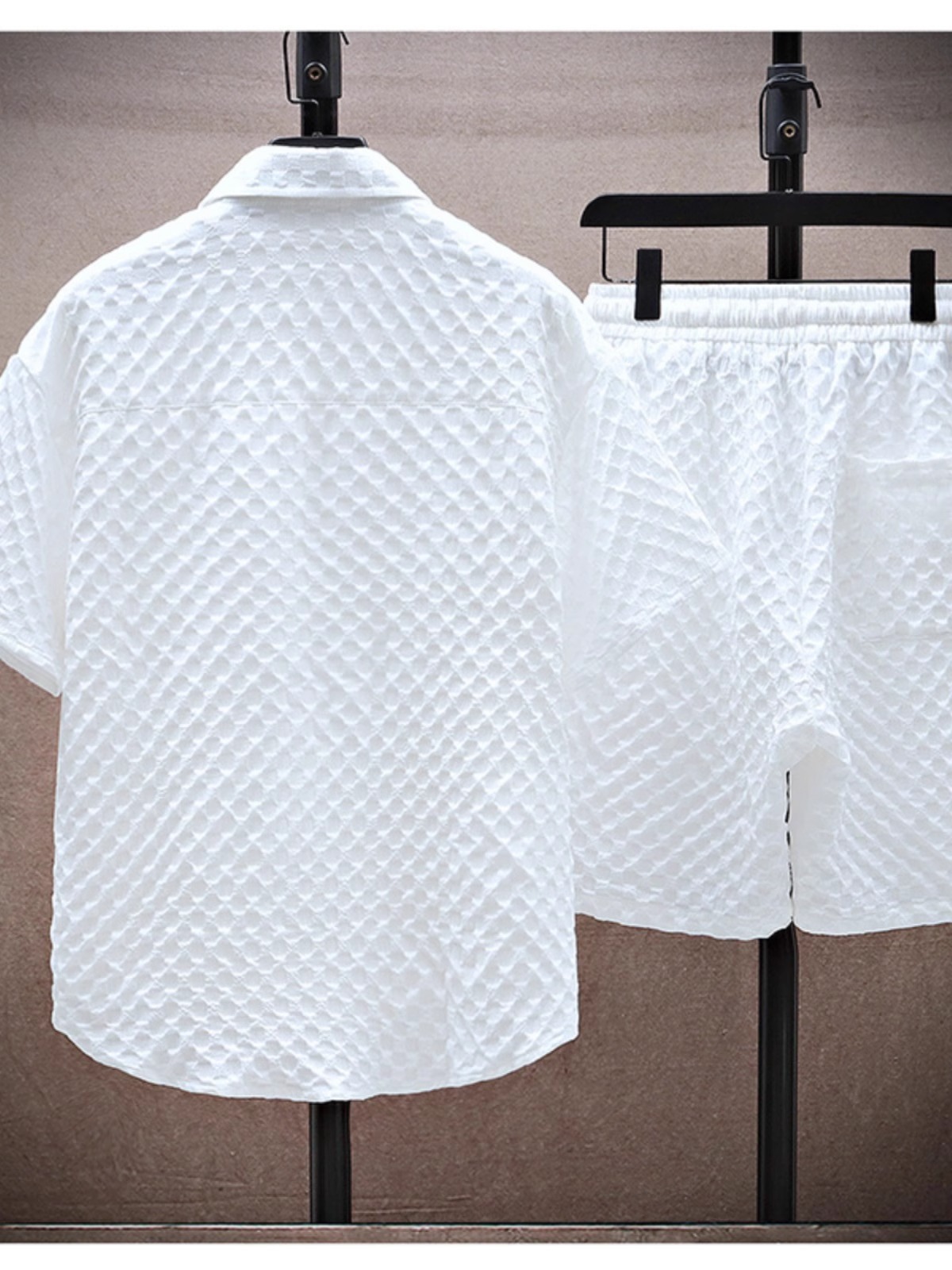 Тонкий спортивный и повседневный набор из двух частей 2024 Летний ледяной шелковый костюм мужской красивый прилив, набор рубашек с короткими рукавами и шорт