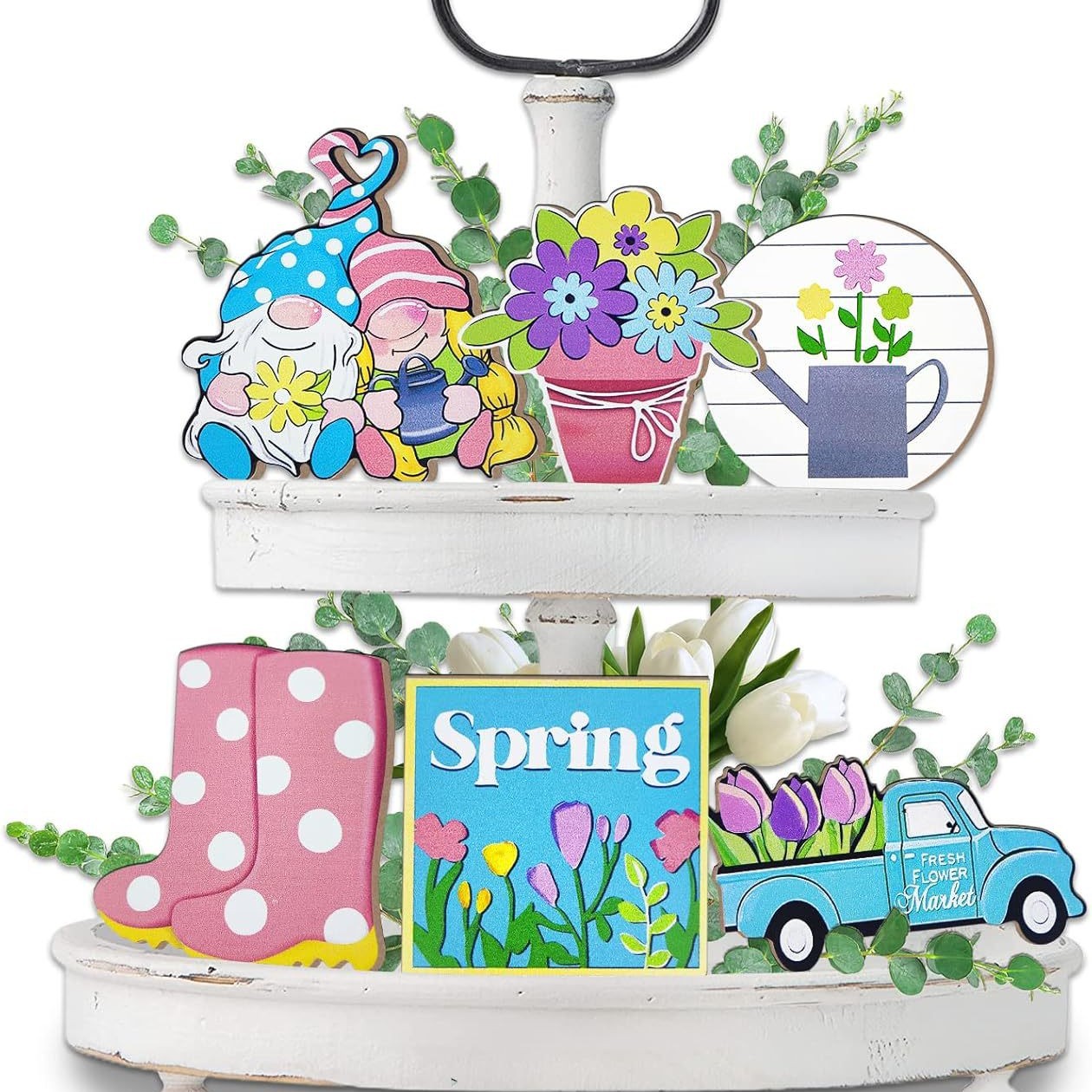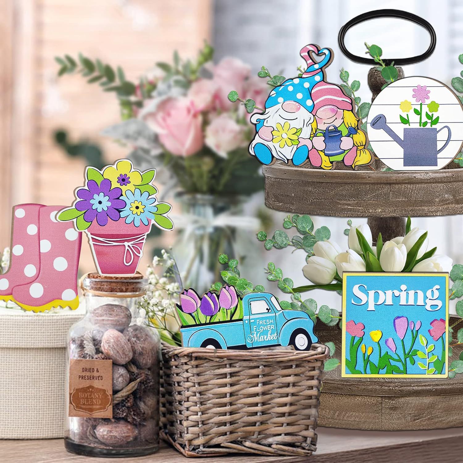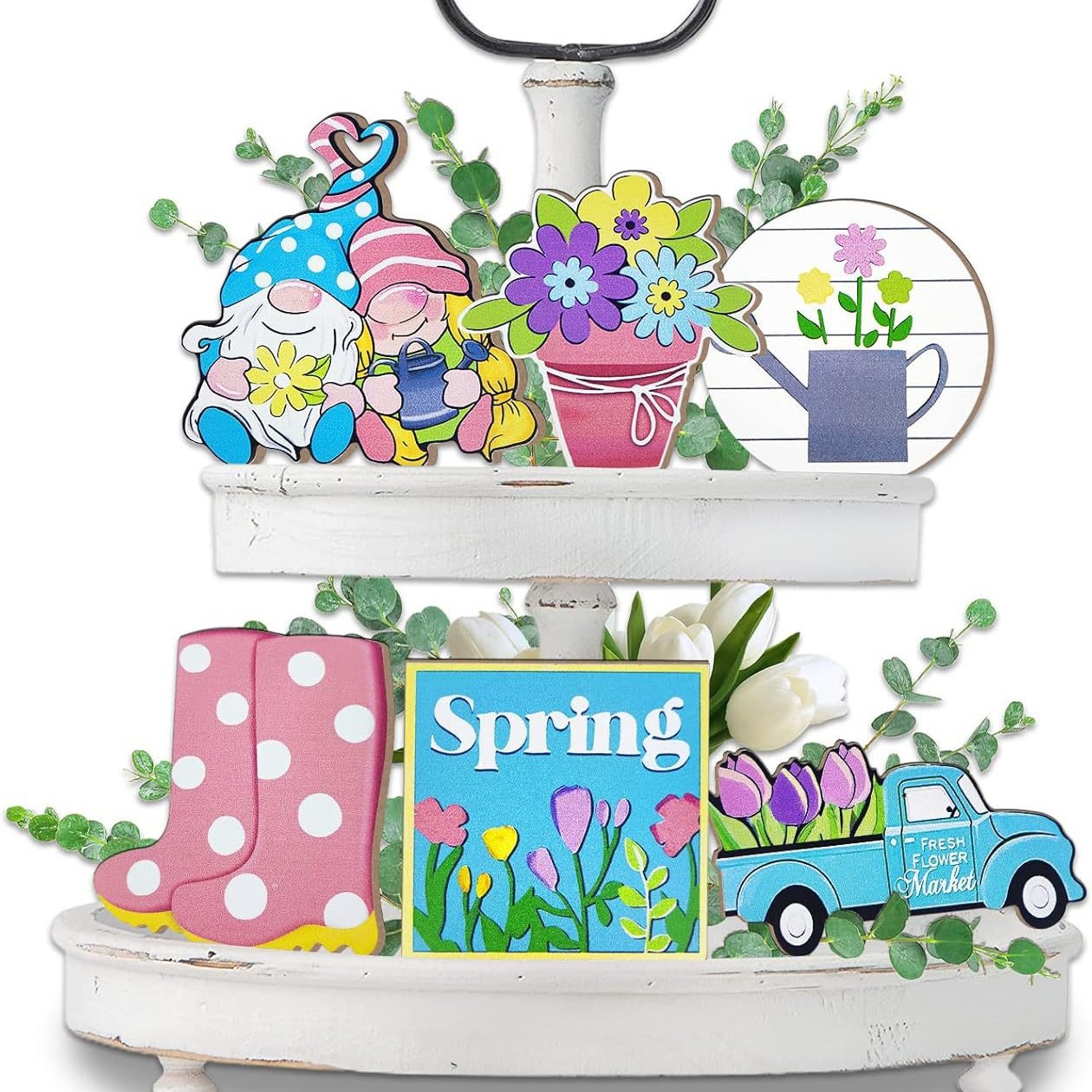 Главная страница > 6 шт. Весенний многослойный поднос декоративный карлик тюльпан грузовик цветочный рынок деревянный стол знак деревенский дом