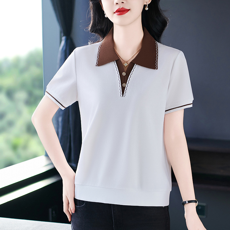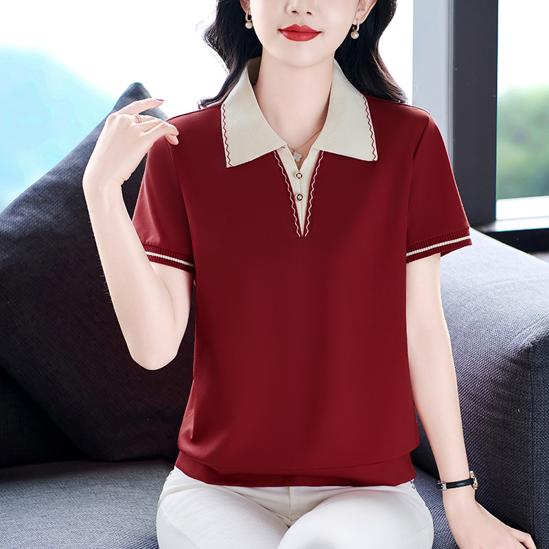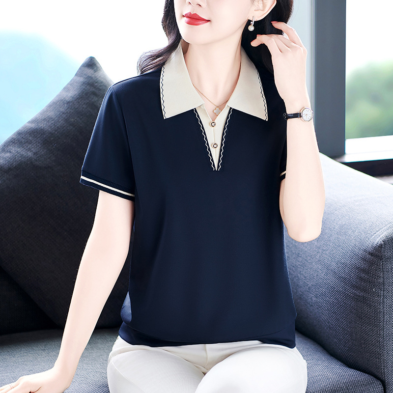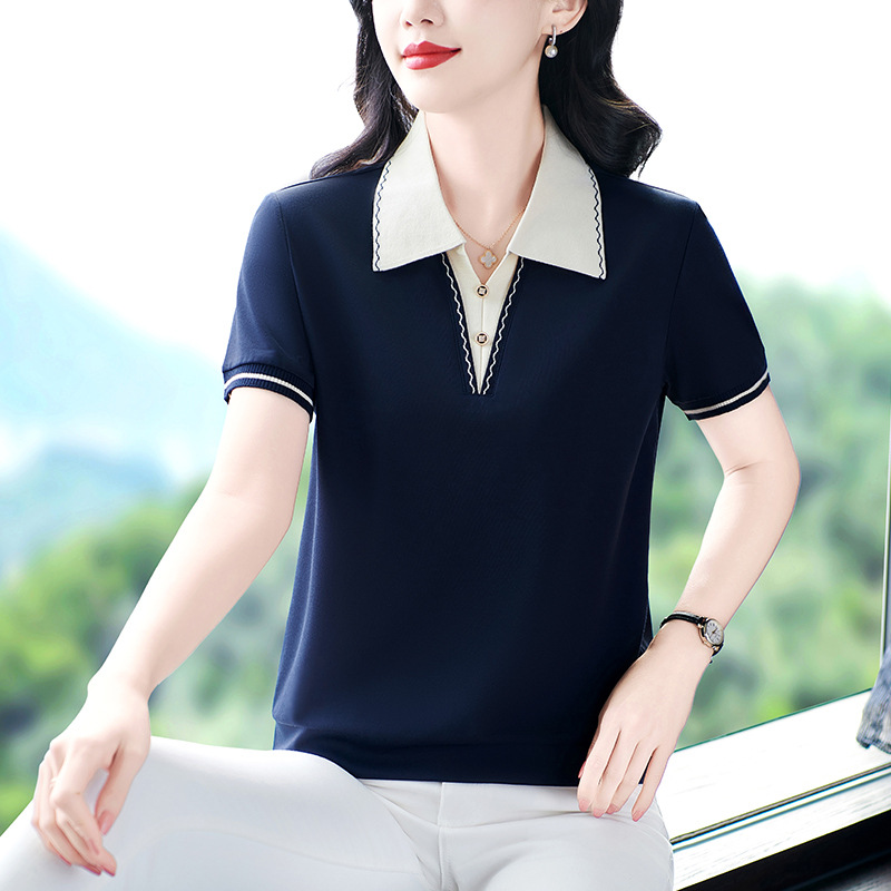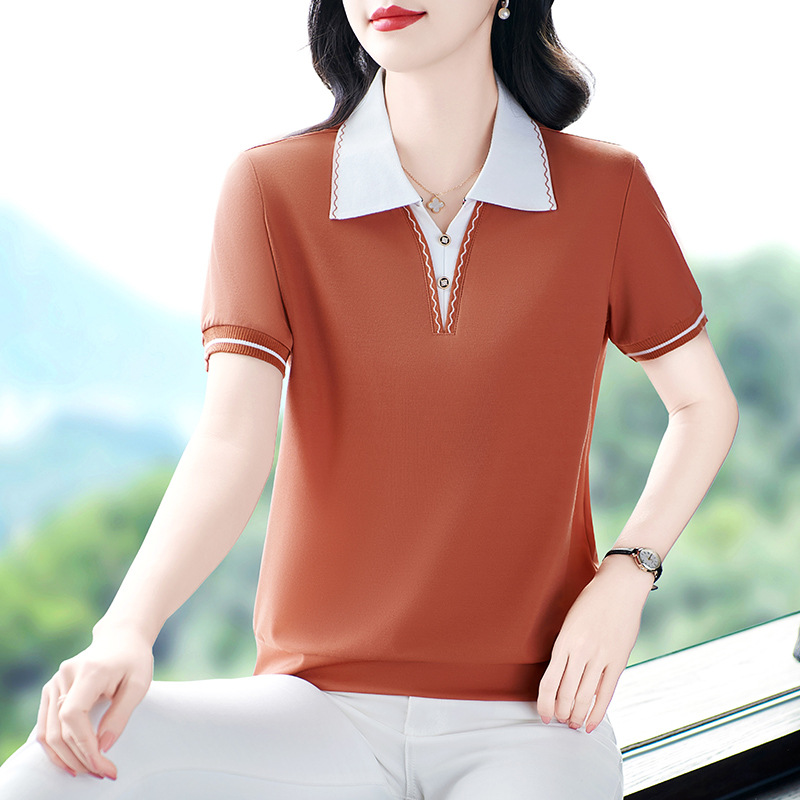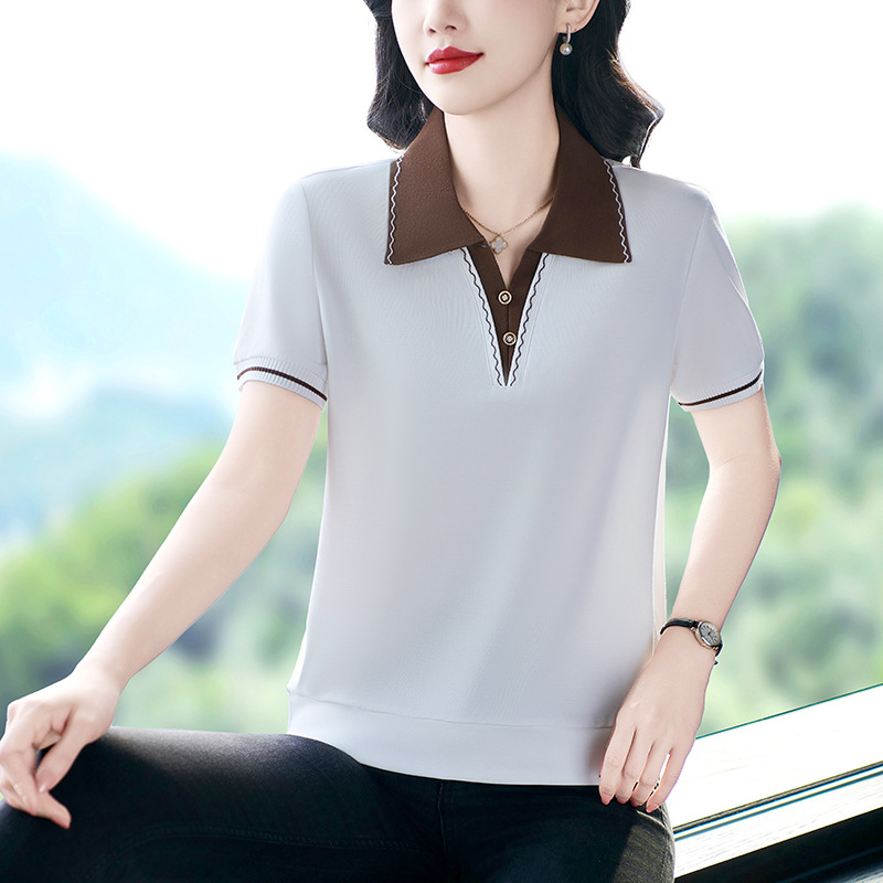 Главная страница > Футболка с короткими рукавами женская летняя 2025 новый иностранный минус возраст мама среднего возраста рубашка поло тонкая хлопчатобумажная рубашка с лацканами