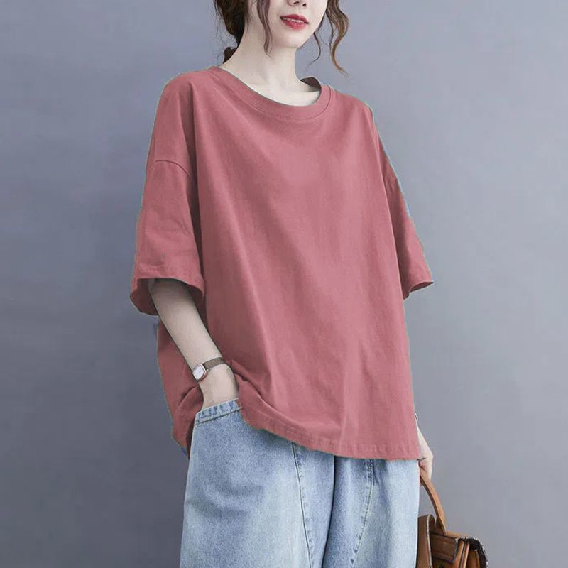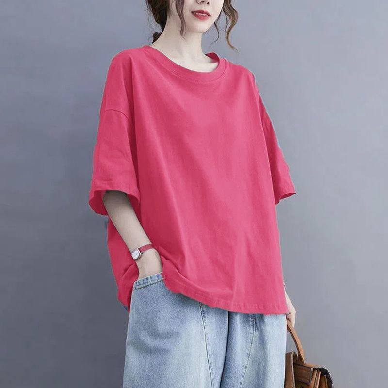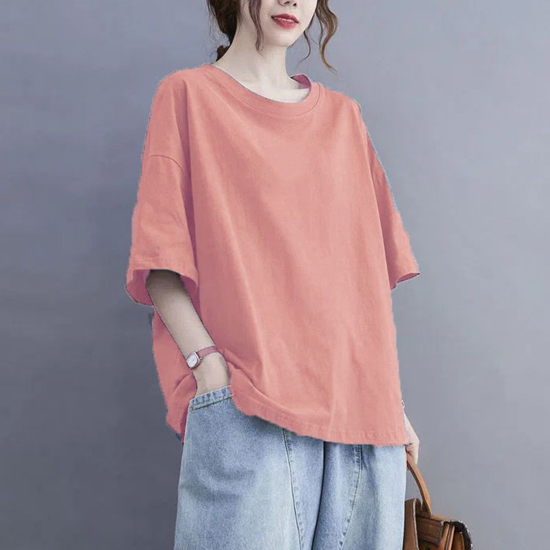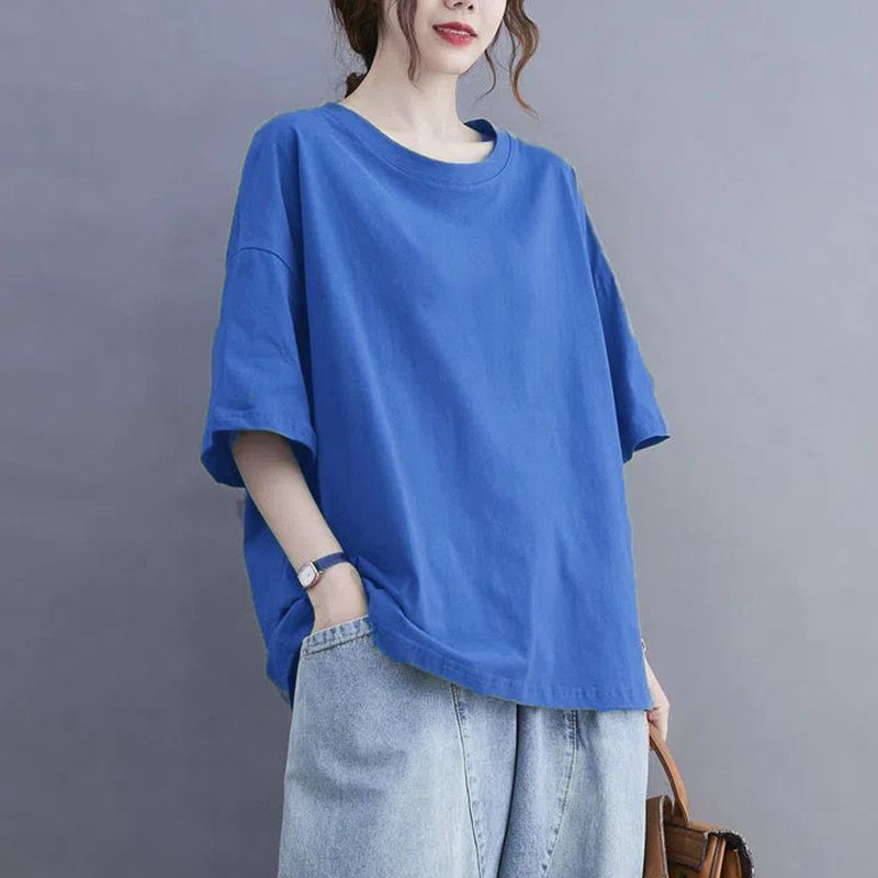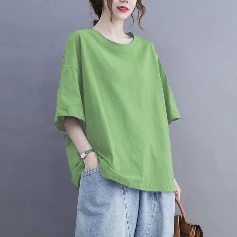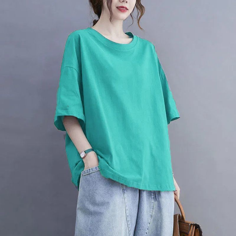 Главная страница > 100kg Женская одежда больших размеров, хлопковая футболка с этикеткой для внешней торговли, женская летняя свободная однотонная футболка с короткими рукавами, женская