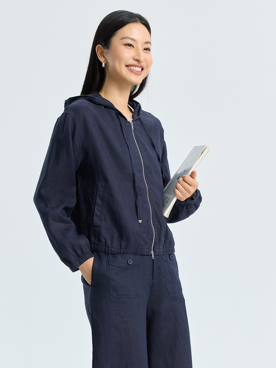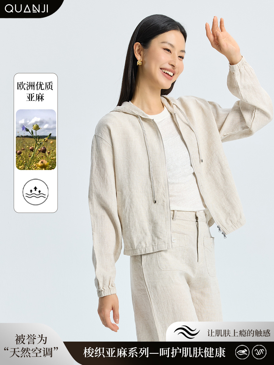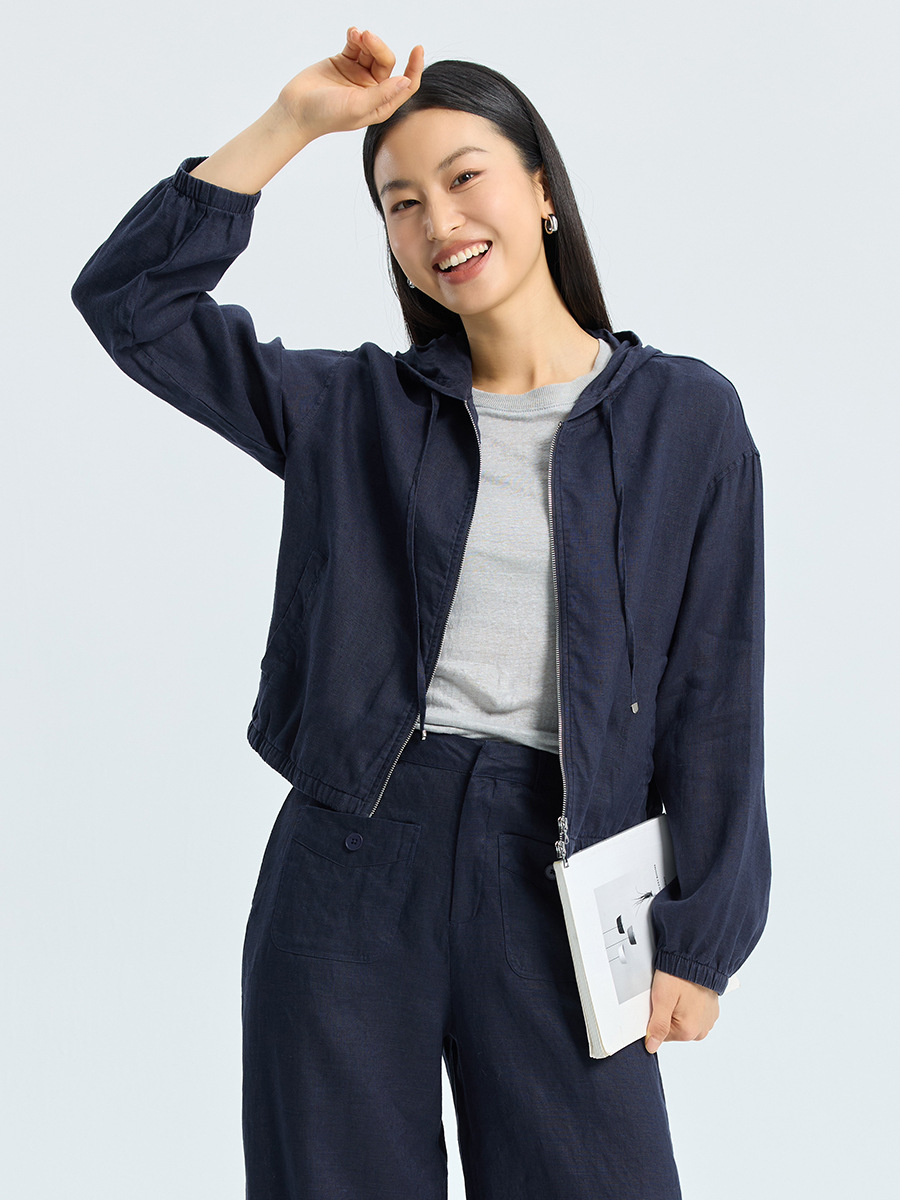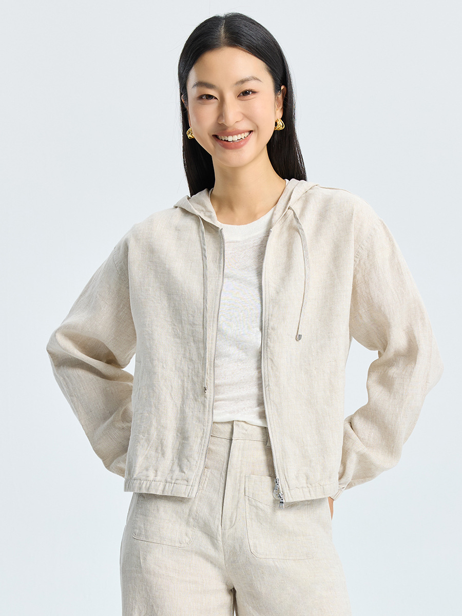 Главная страница > Женская льняная куртка, летняя новая тонкая свободная простая удобная тонкая тканая льняная куртка с капюшоном