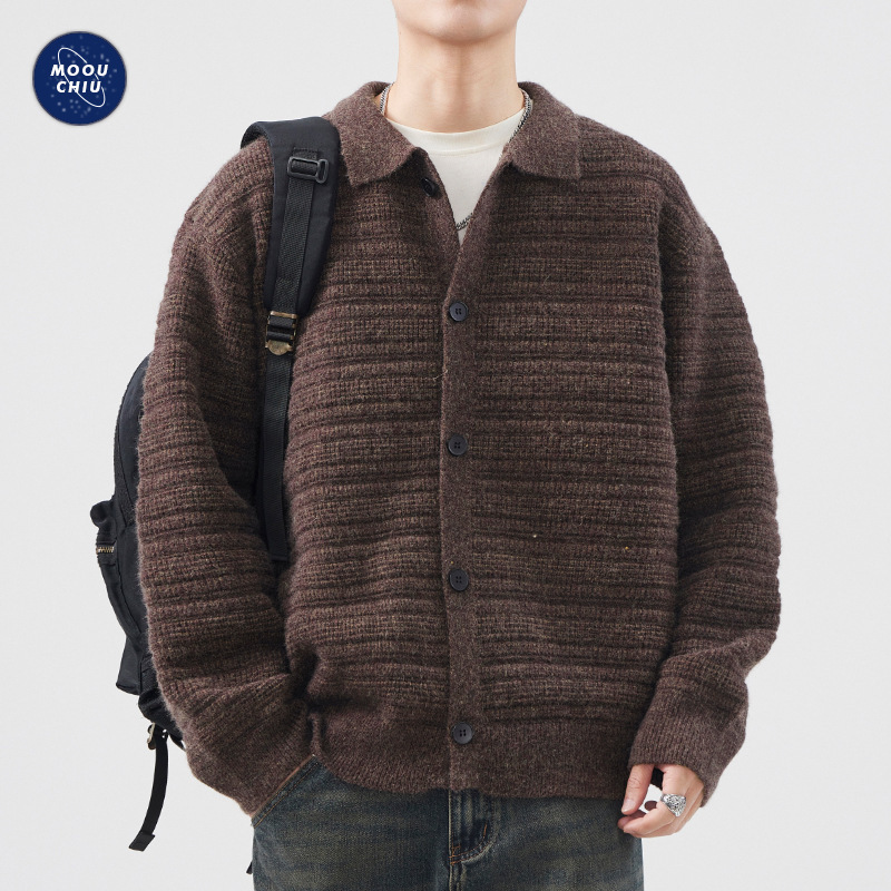 Главная страница > Мужская одежда Muqiu американский кардиган свитер куртка для мужчин свободная ретро высокого уровня трикотажный топ с длинными рукавами
