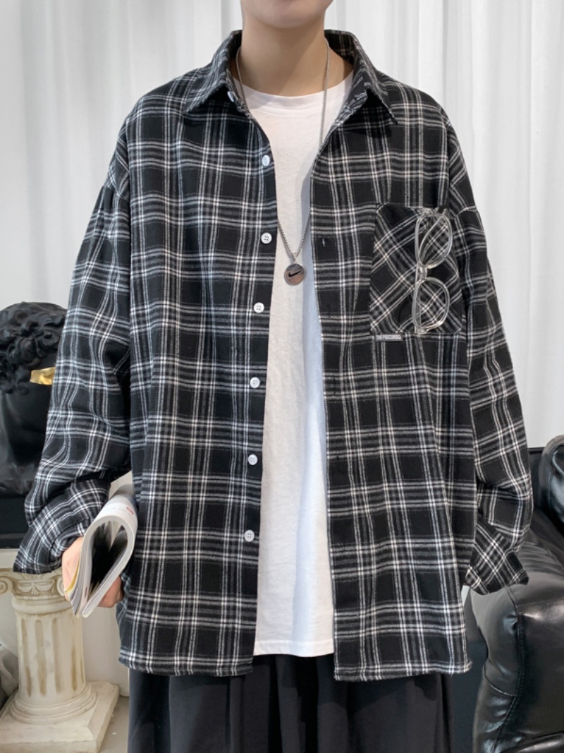 Главная страница > Клетчатая рубашка с длинными рукавами мужская весна и осень свободная корейская версия прилива повседневного ретро на улице 2025 новая рубашка