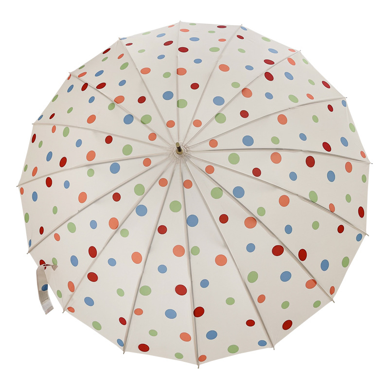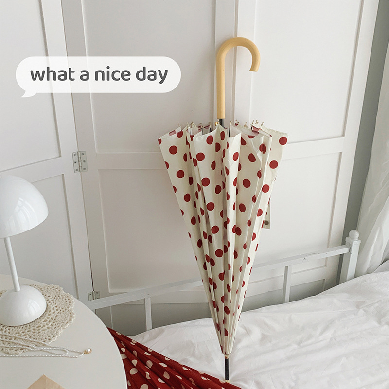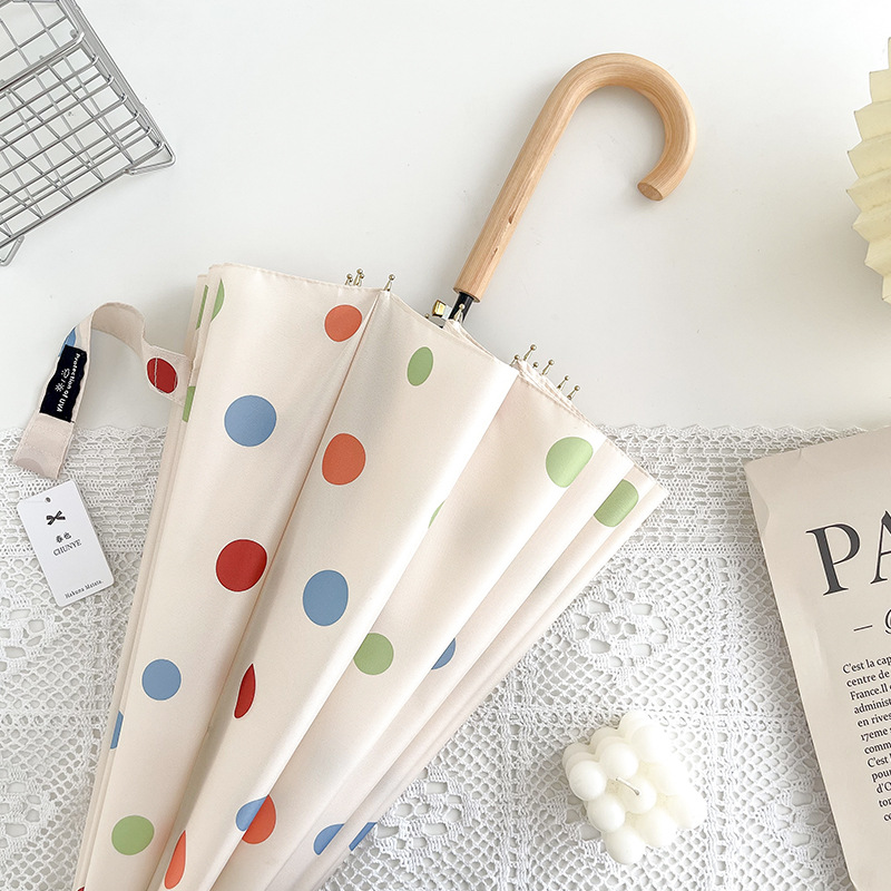 Карамельный зонт с ручкой из орехового дерева в горошек, длина 16 карат, длинная ручка