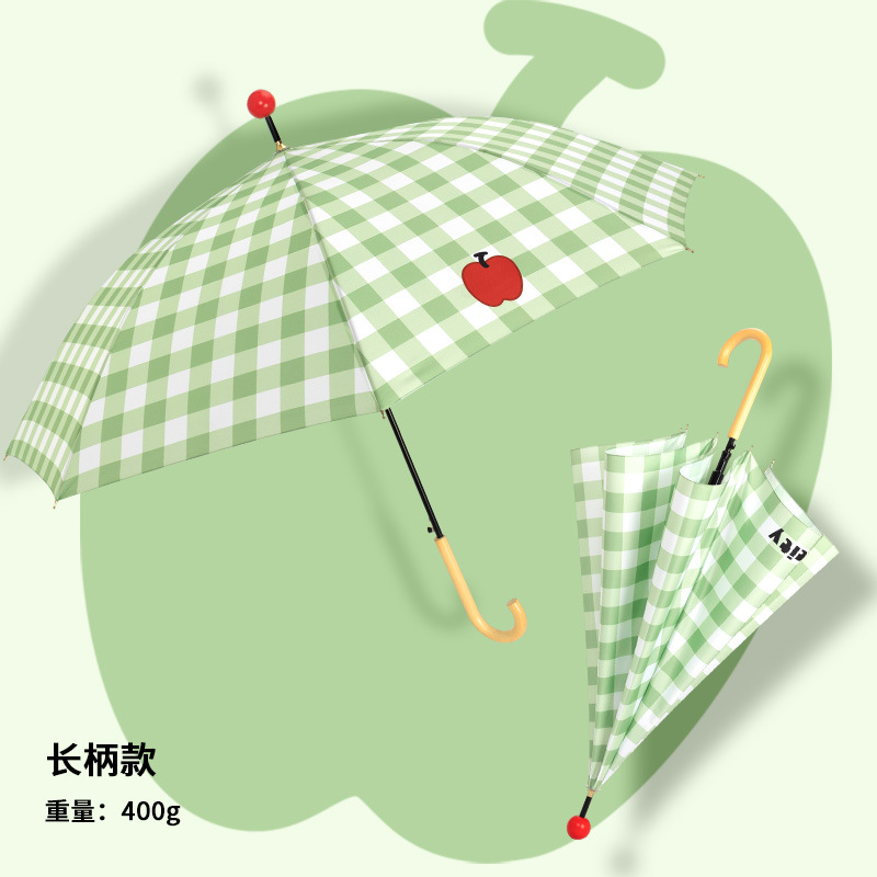 Зеленый клетчатый зонт Happy Apple с длинной ручкой 8K (красная кепка)