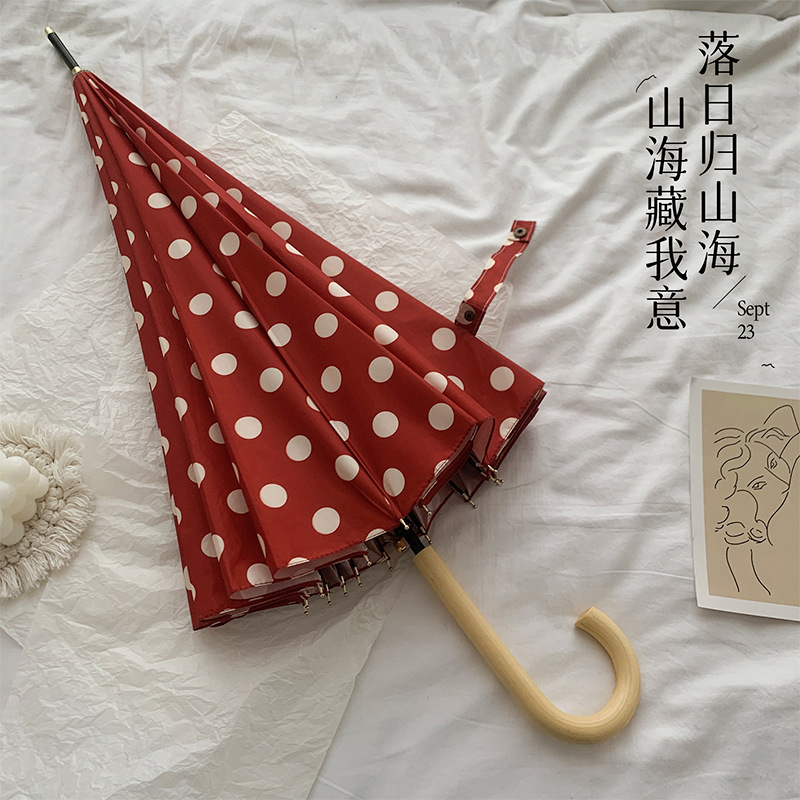 Ручка зонта из красного дерева в горошек мокко, зонт с длинной ручкой 16 карат