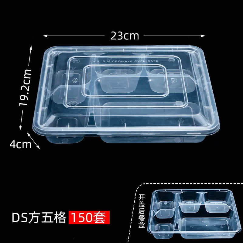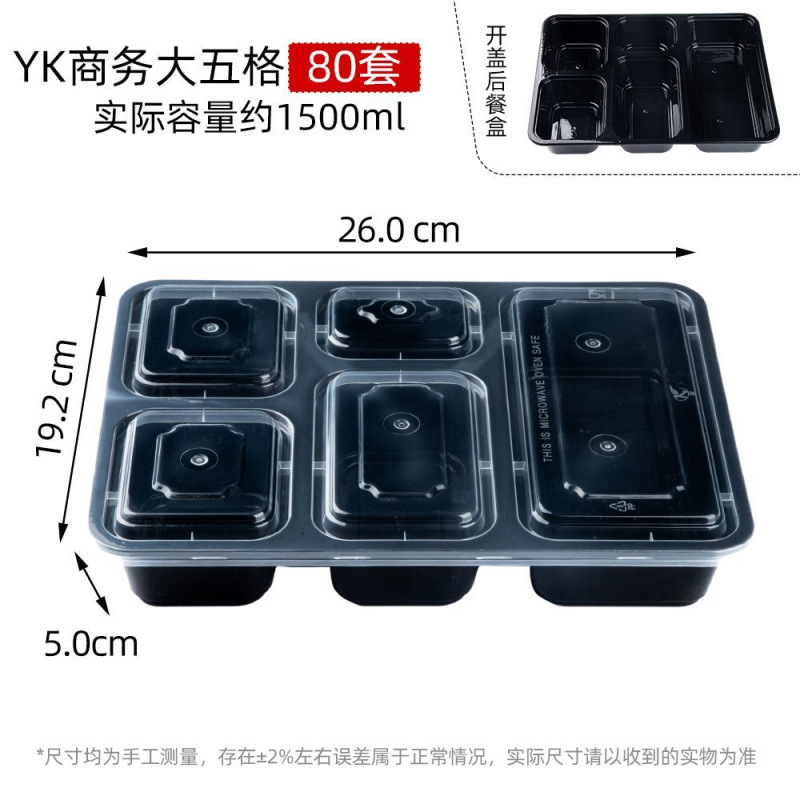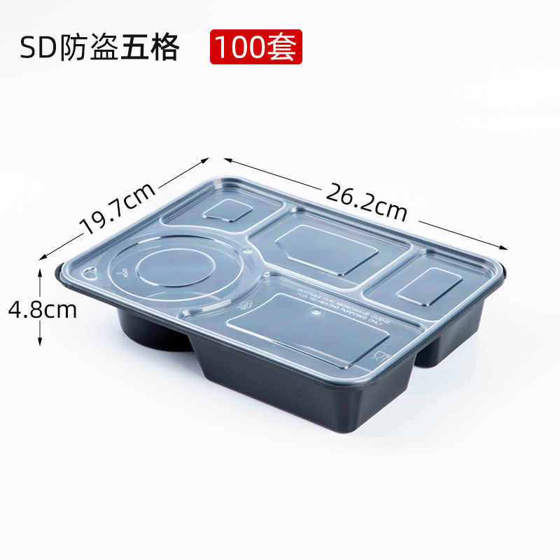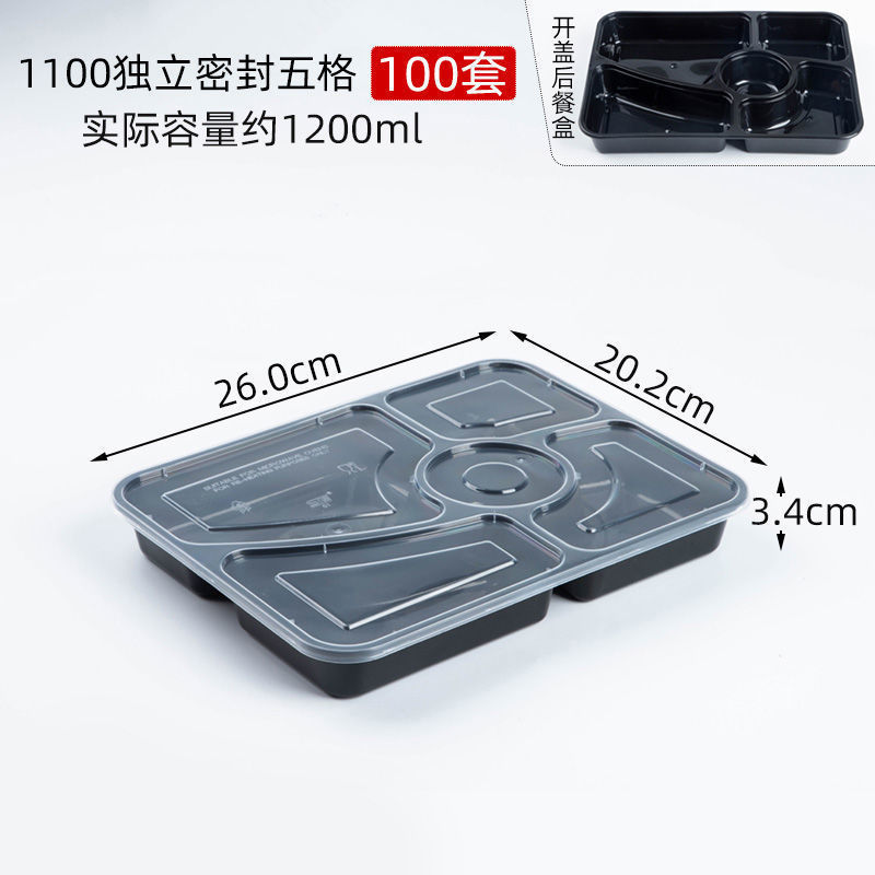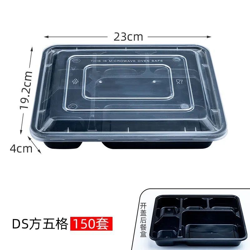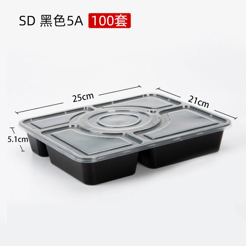 Прямоугольный ланч-бокс для фастфуда на вынос, черный круглый одноразовый ланч-бокс с тремя отделениями, четырьмя отделениями, пятью отделениями