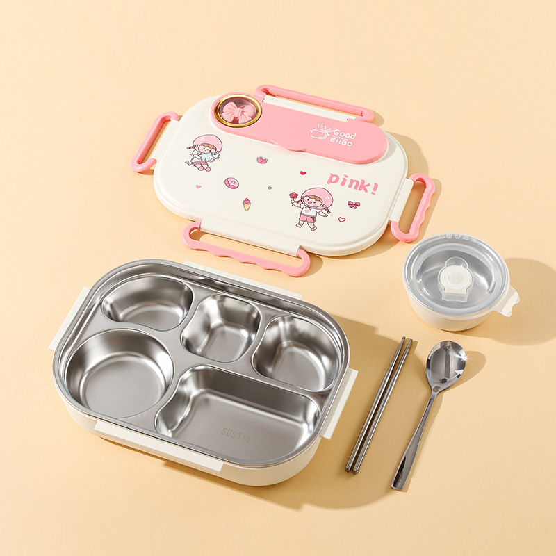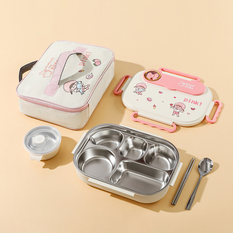 Розовая маленькая девочка, пять кадров★Одиночная упаковка + посуда + суповая тарелка + термосумка [316 антибактериальный]