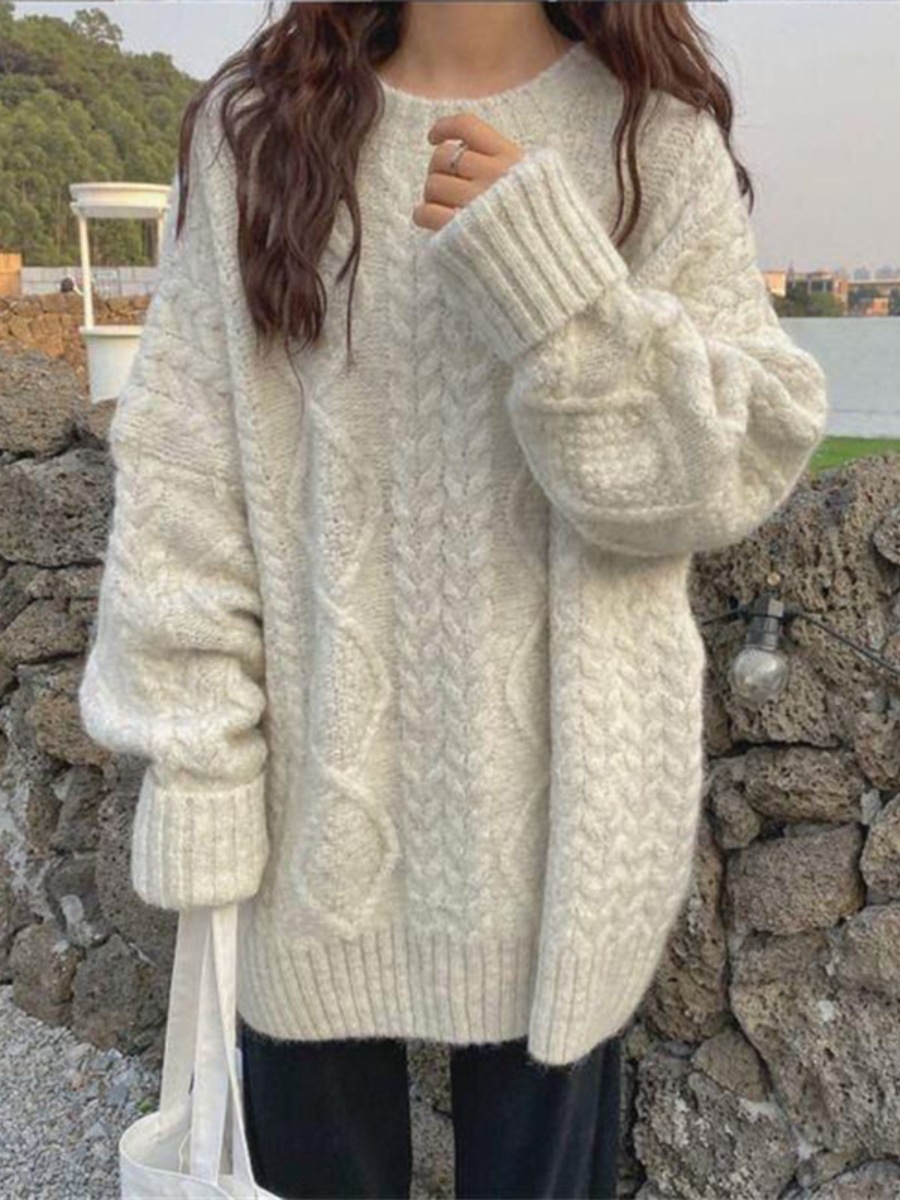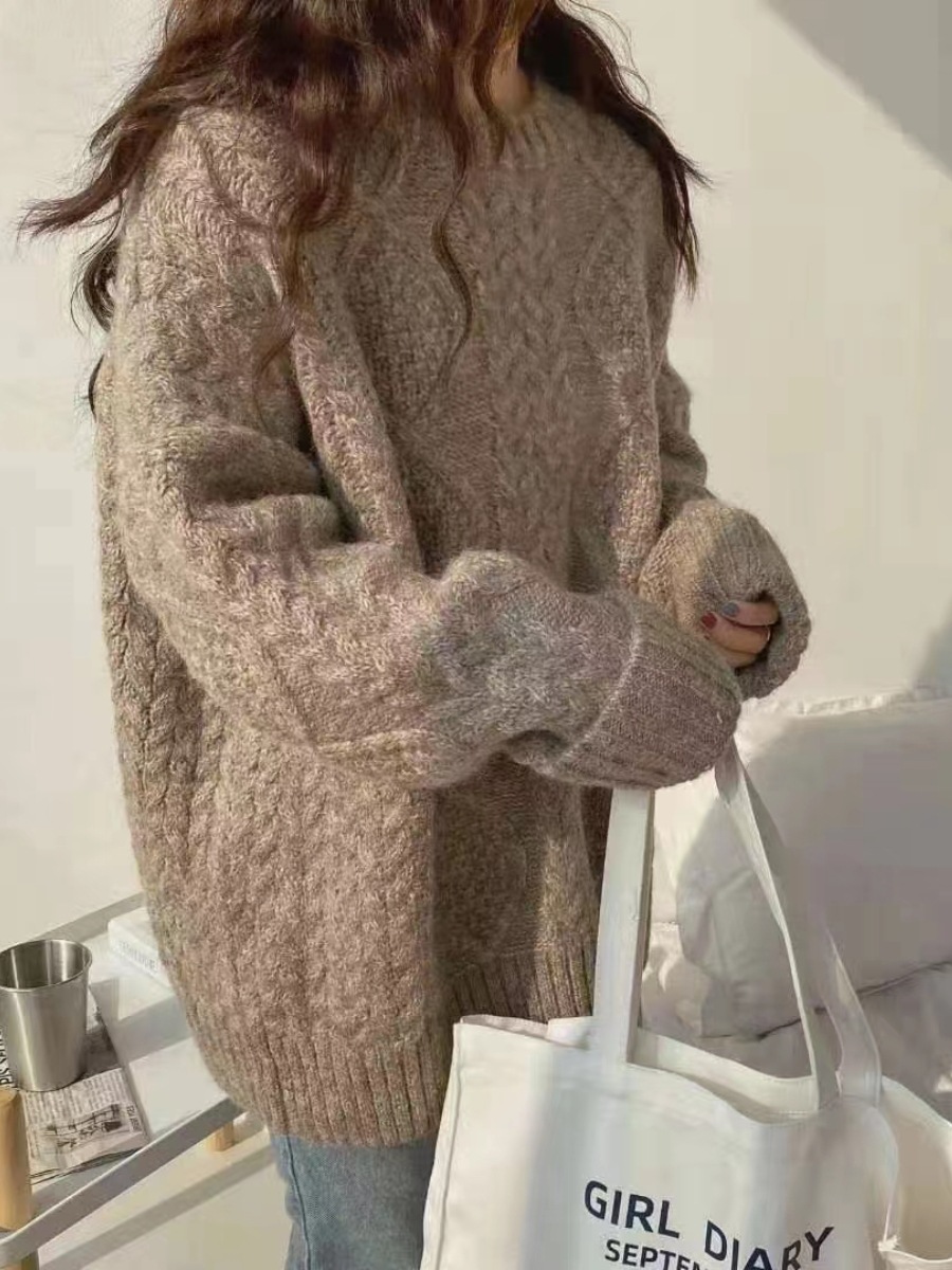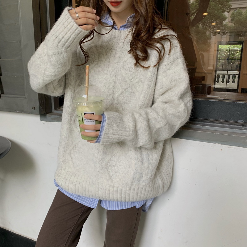 Главная страница > Новая Осенняя вязаная рубашка, плотный свитер Twist, Женская Осенняя свободная вязаная верхняя одежда в ленивом стиле, верхняя Базовая рубашка для женщин