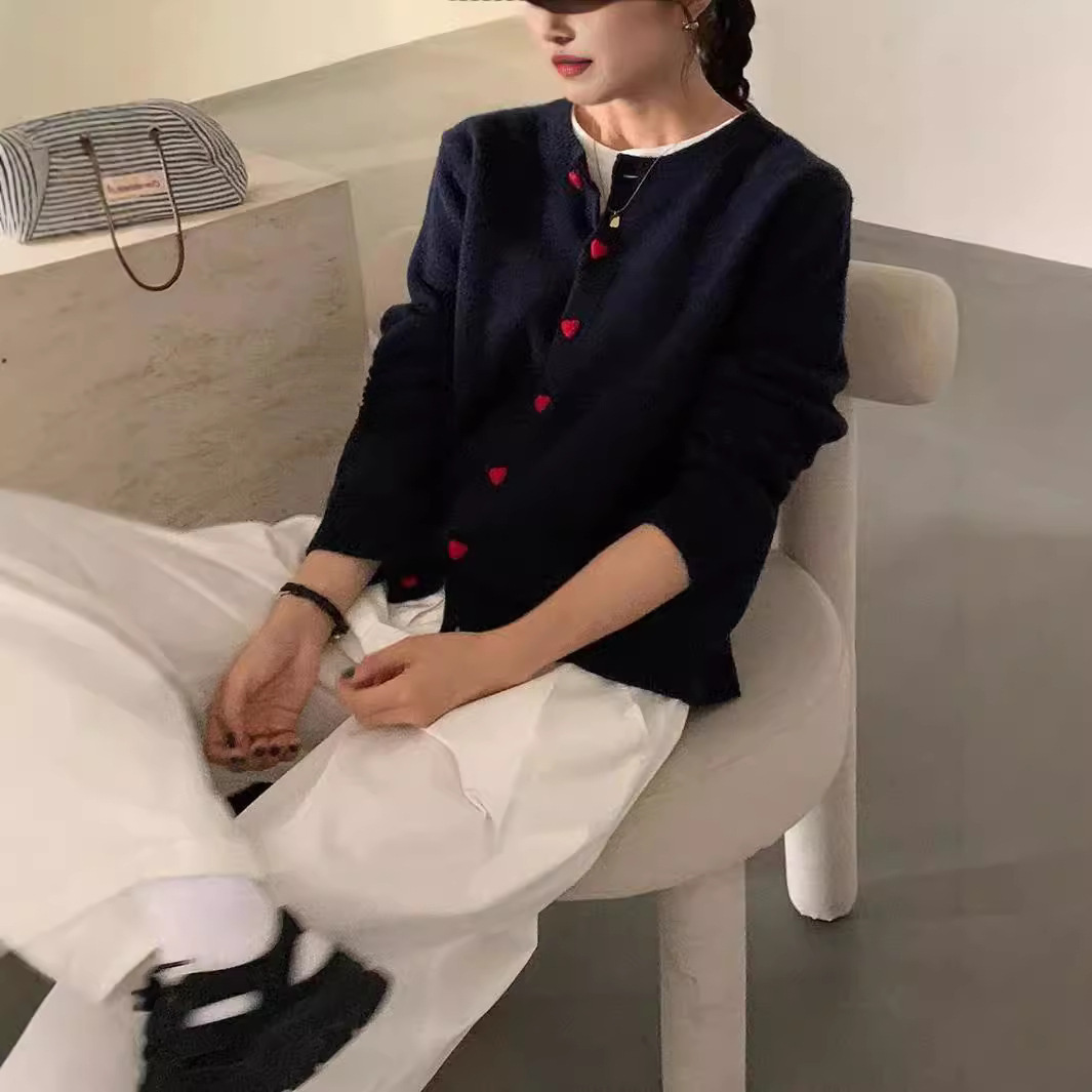 Главная страница > Новый стиль колледжа ретро вязаный кардиган для женщин осень нишевые дизайн любовь пуговицы свитер куртка