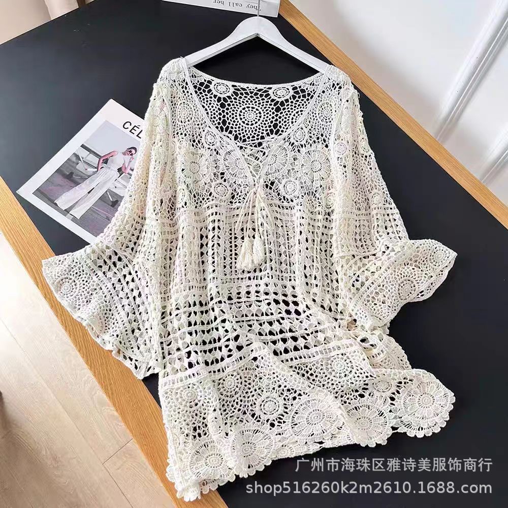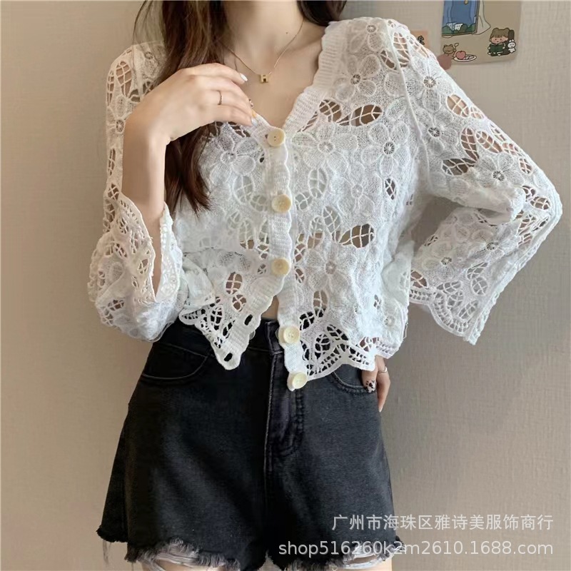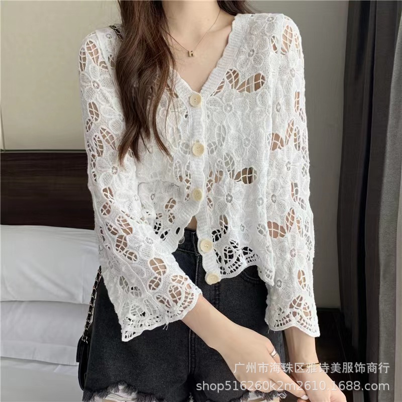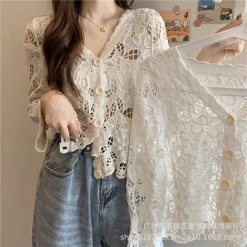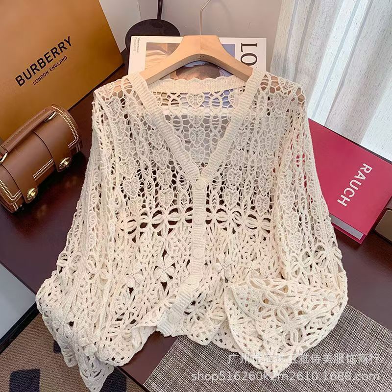 Главная страница > Новый французский супер Сказочный темперамент полый вязаный крючком свитер женский свободный тонкий V-образным вырезом мягкий восковой свитер пальто оптом