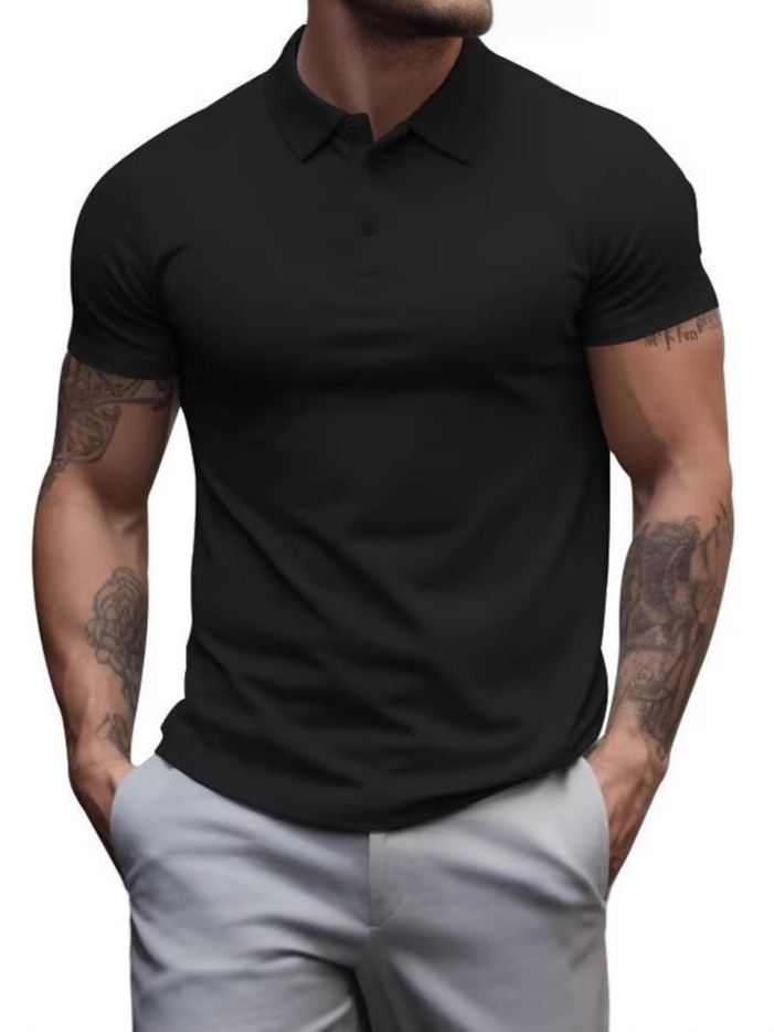 Главная страница > 2025 новая летняя повседневная однотонная рубашка-поло с коротким рукавом, дышащая и удобная, свободного кроя, спортивная, с отложным воротником для мужчин