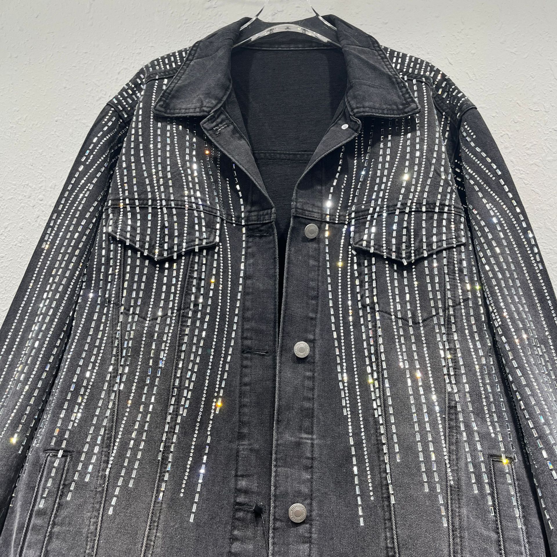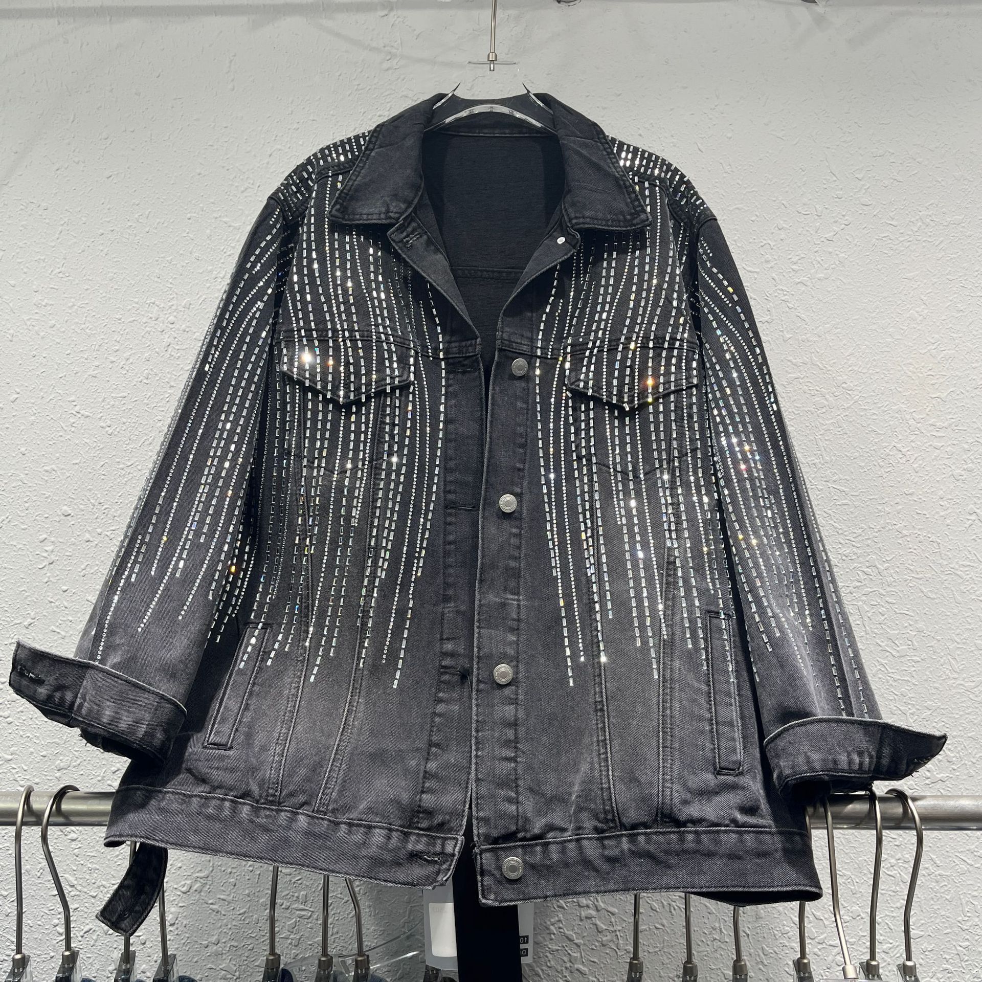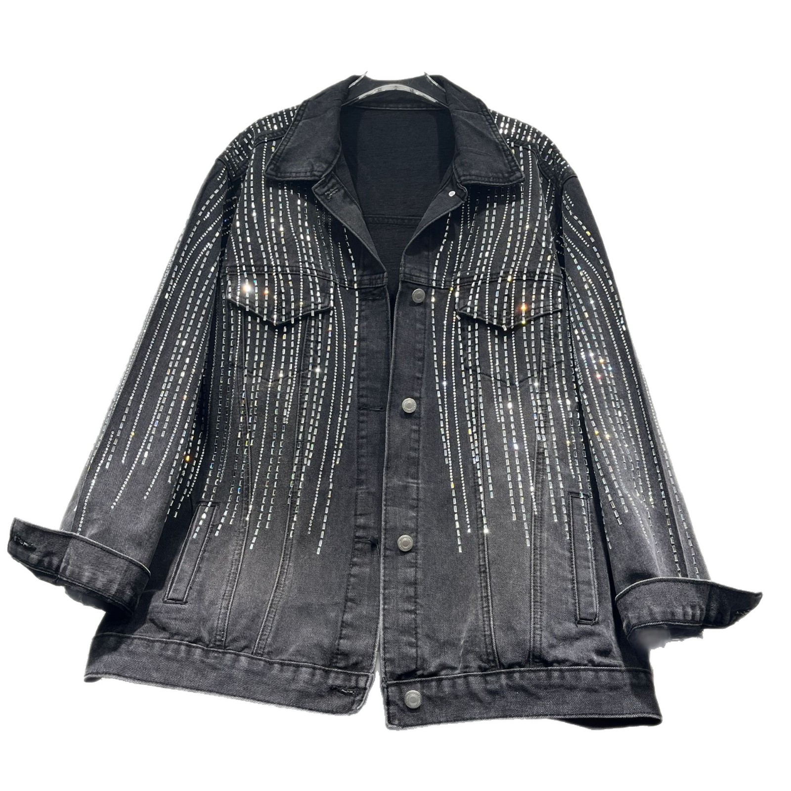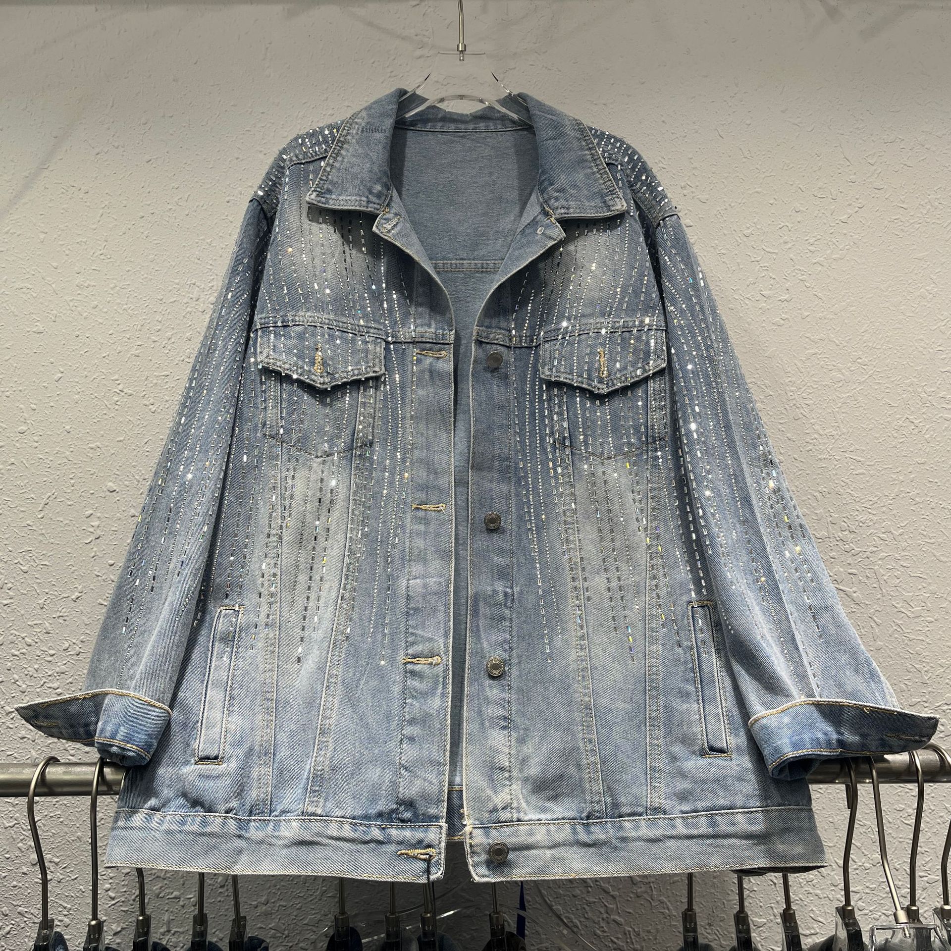 Главная страница > Американская повседневная ретро-куртка свободного кроя в европейском стиле, новинка осени 2025, прочная джинсовая куртка с горячими стразами для женщин