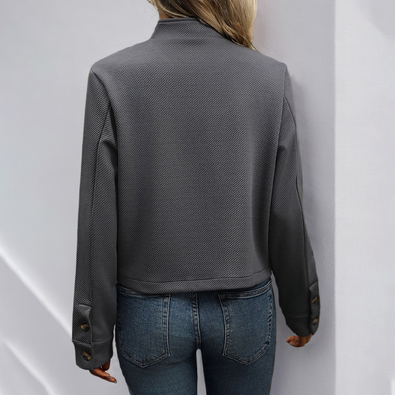 Главная страница > Новая женская куртка Amazon 2025 года: европейский и американский стиль, осенняя, с фактурным воротником-стойкой, длинными рукавами, однотонная, для женщин.