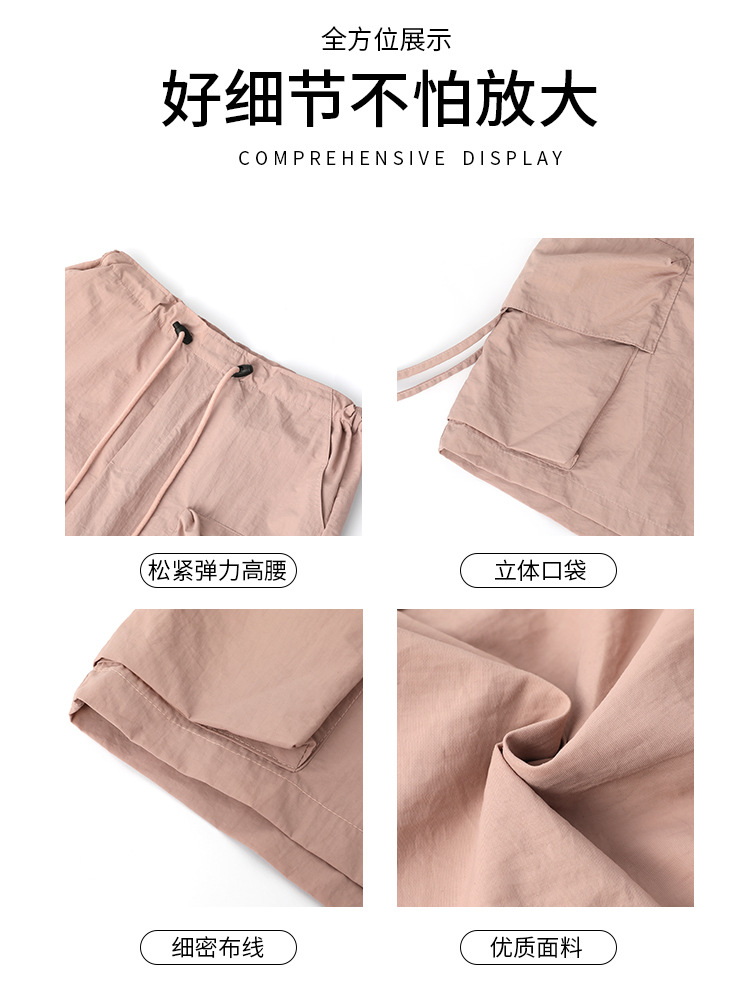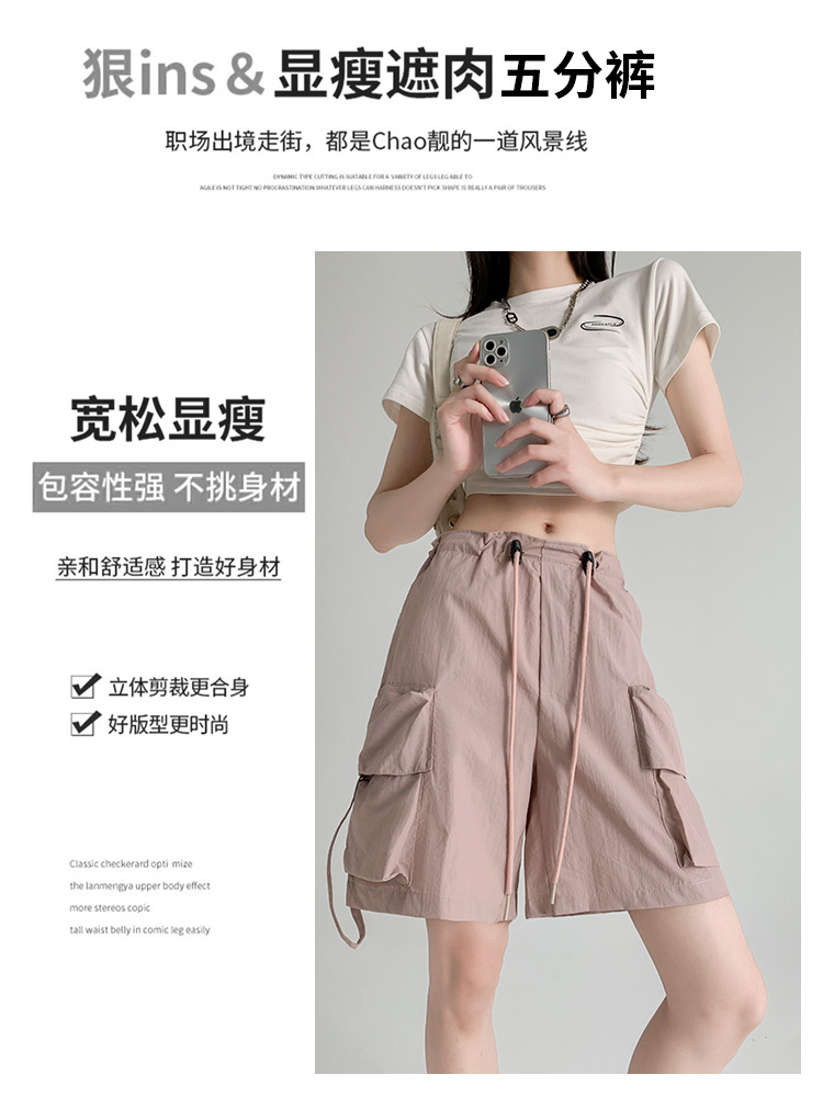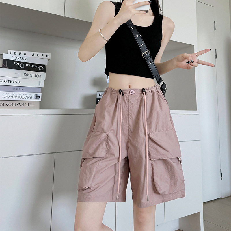 Главная страница > Женские летние тонкие шорты-карго с большими карманами, широкие шорты с высокой талией, быстросохнущие шорты средней длины в американском стиле для уличной одежды.