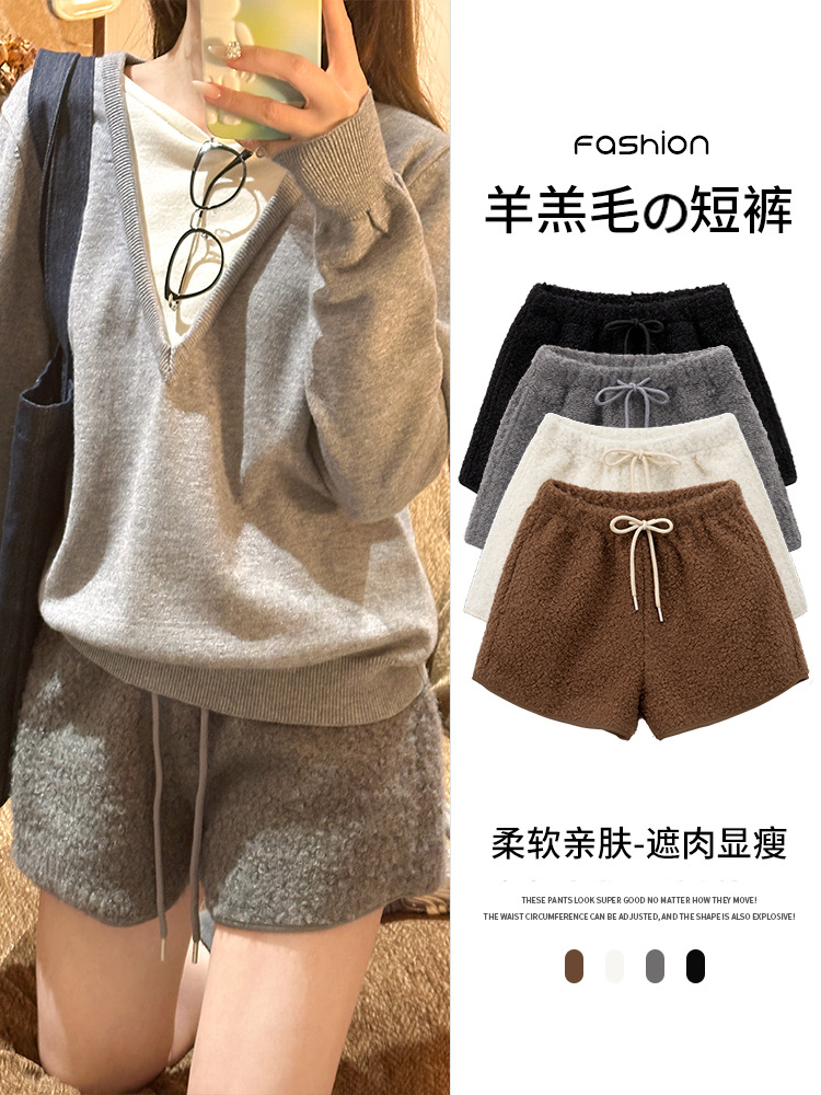 Главная страница > Кашемировые шорты женский зимний новый стиль с высокой талией свободно носить повседневные брюки ретро теплые дикие горячие штаны