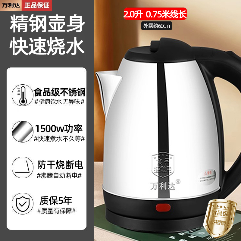 [Версия из нержавеющей стали] 2,0 л — серебряный горшок 1.5m провода — автоматическое отключение питания