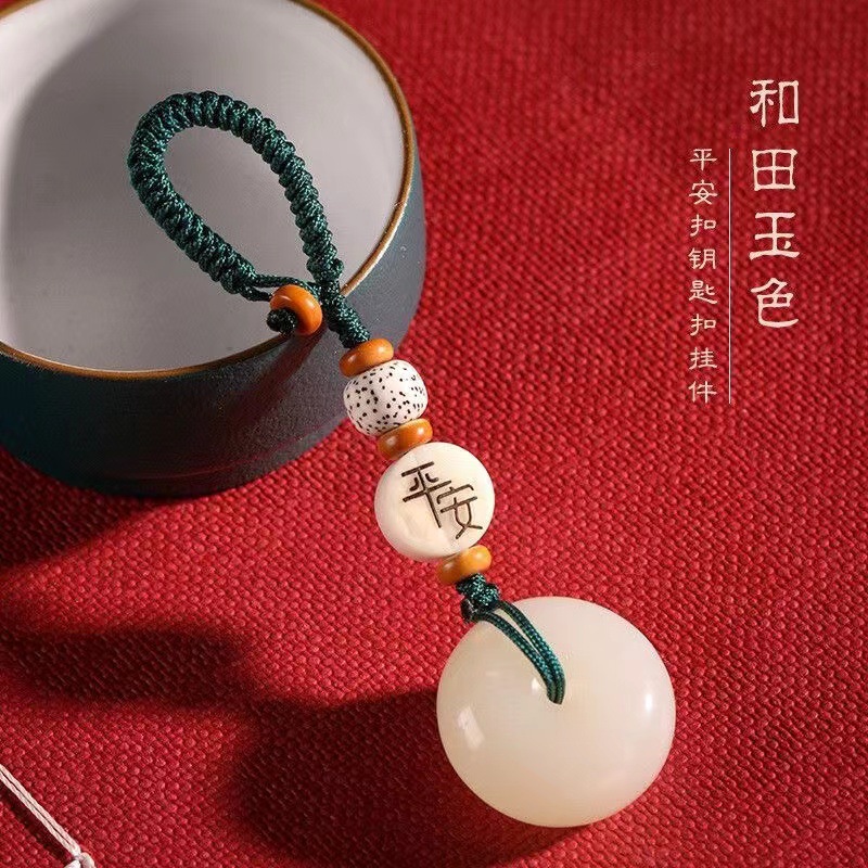 Главная страница > Подвеска-кулон из нефрита в виде пряжки мира, ручная работа, плетеный брелок для ключей от машины, простой сувенир для путешествий с национальным стилем.
