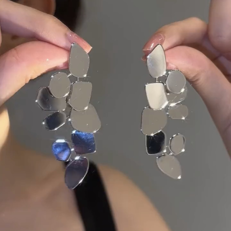 Суперпопулярные минималистичные геометрические серьги с эффектом высокого класса, крутой стиль, асимметричные серьги, нишевые серьги-цепочки с пайетками.